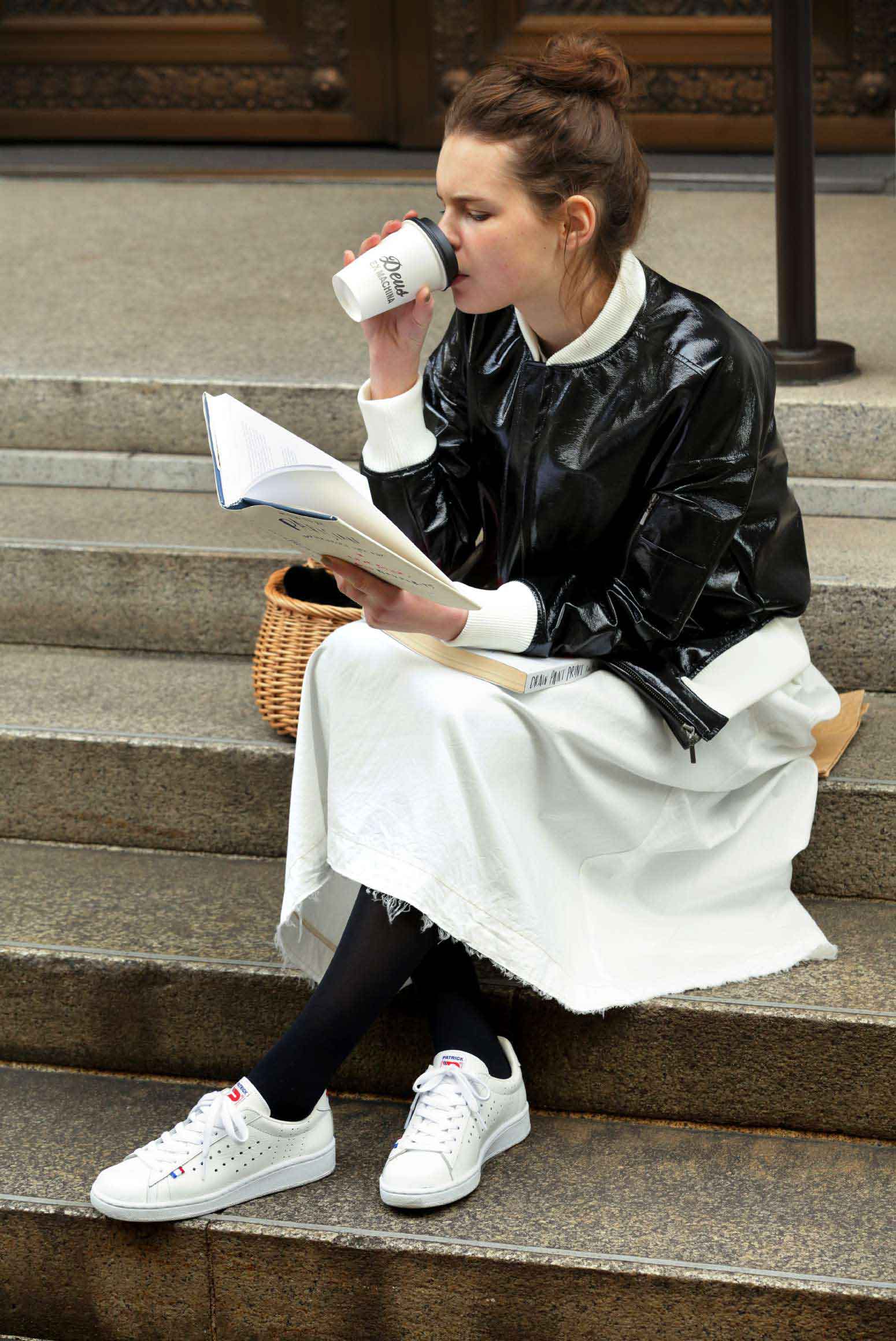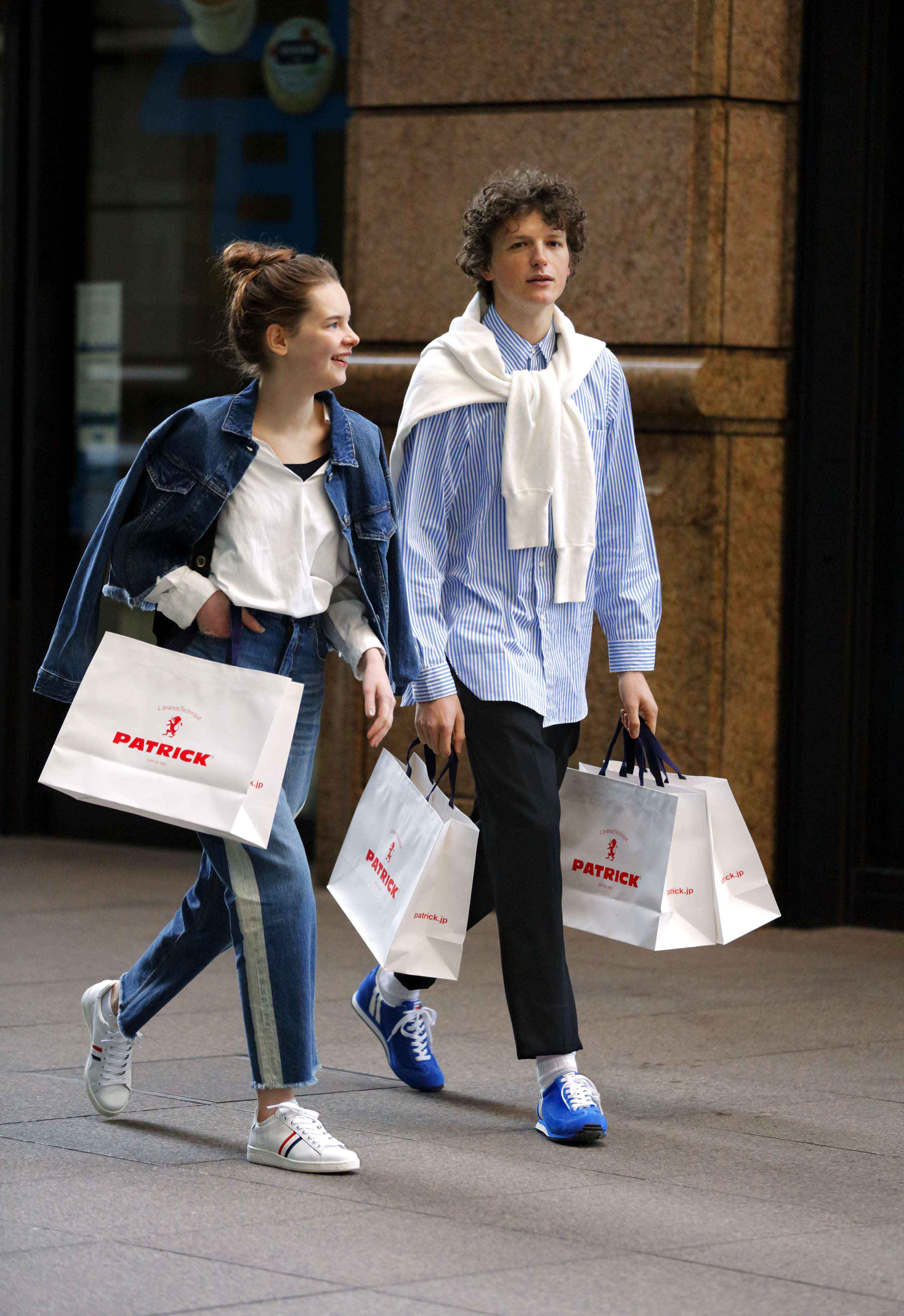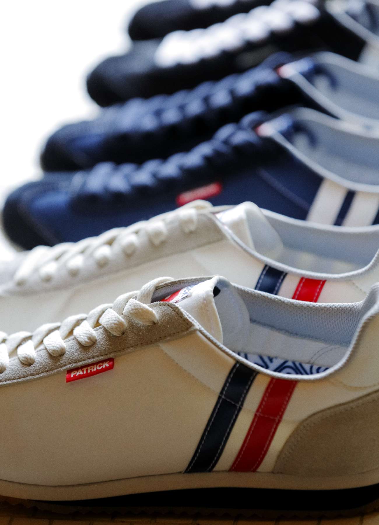 - GIRL 左:シンプルなデザインながら、ブランドのトレードマークとなっている、トリコロールカラーのラインが目を惹く「MACOMER」。色々なスタイリングにマッチしてくれているので、持っておいて損はない、まさに王道の一足。