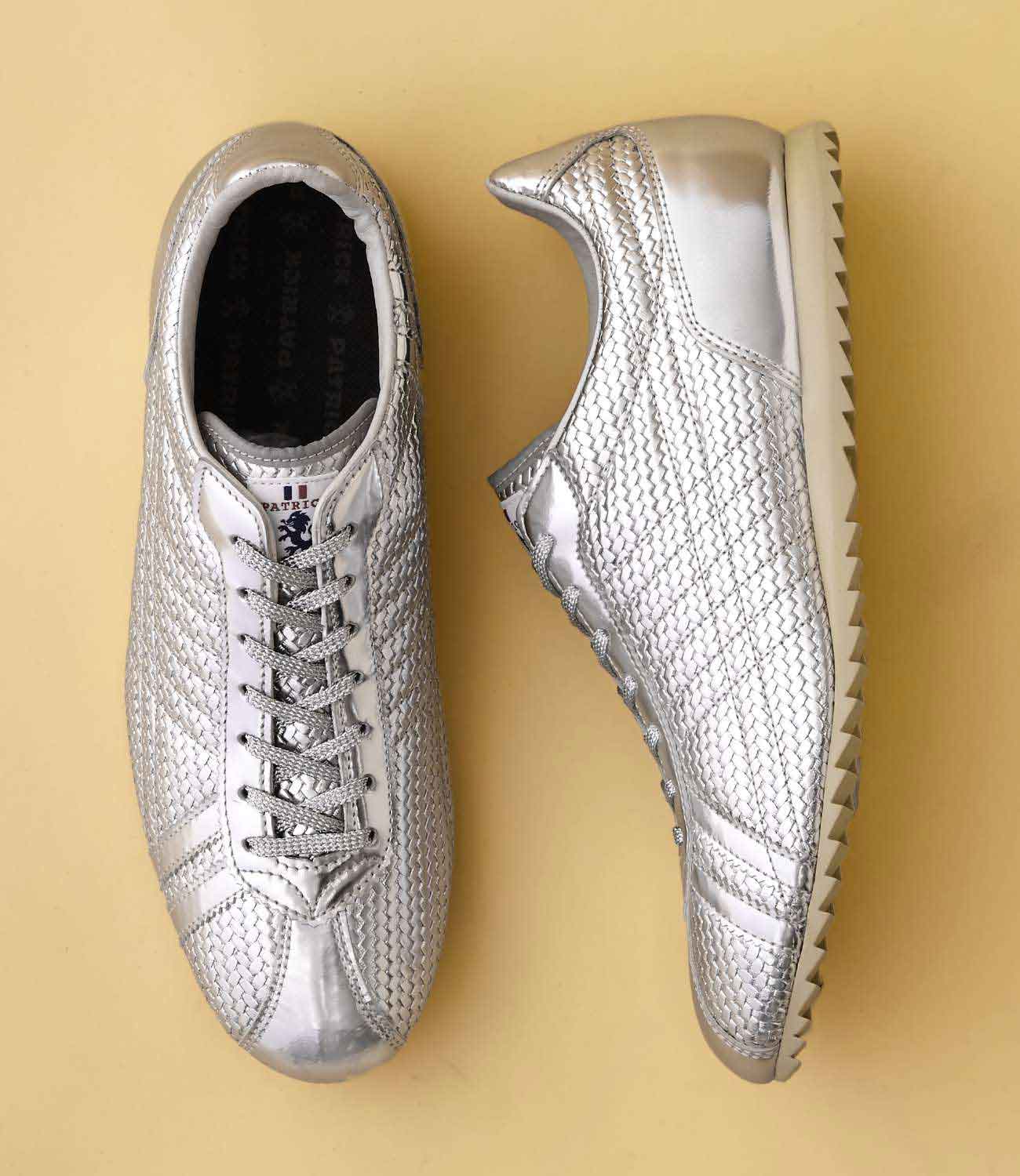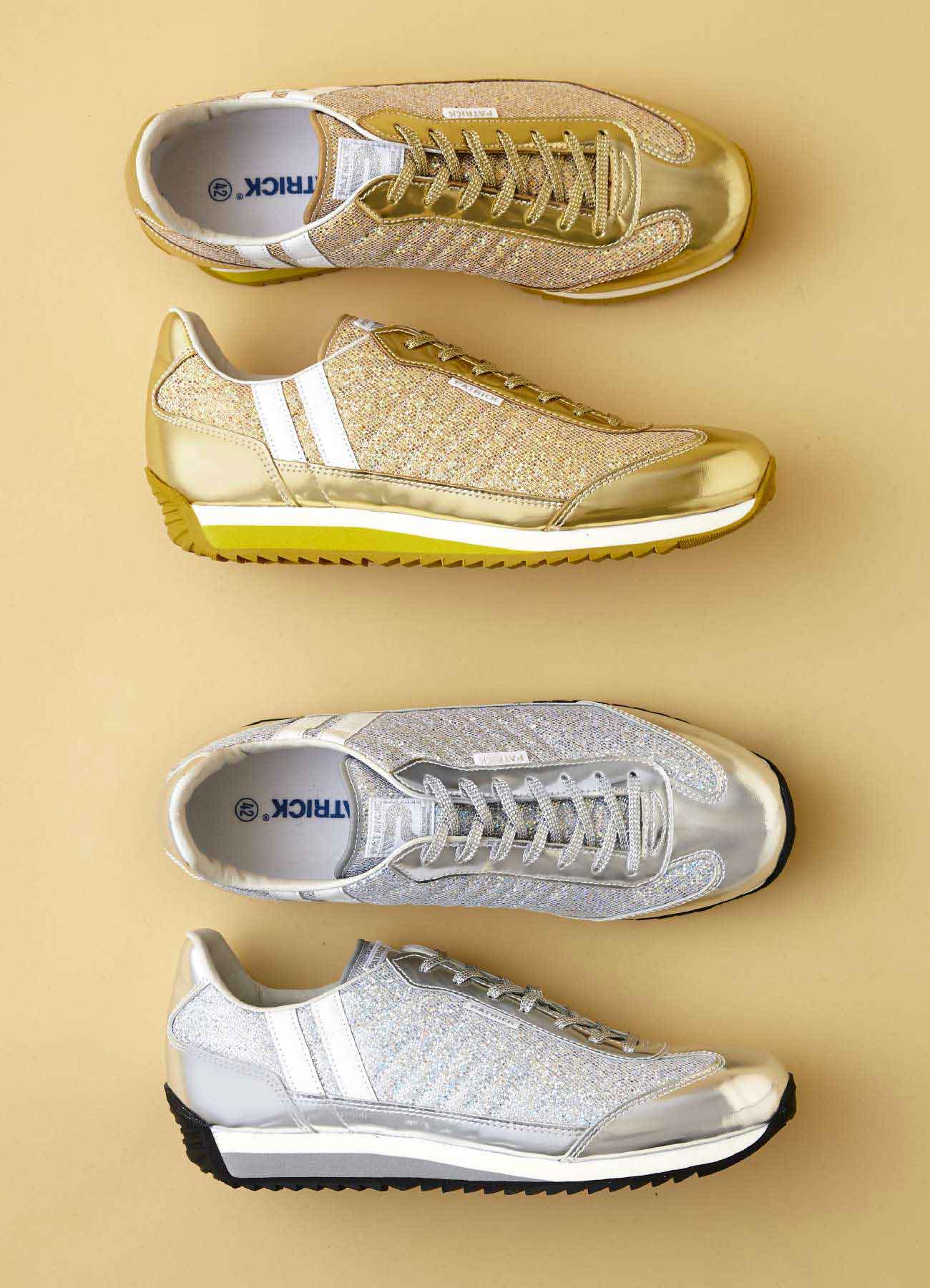 - 思わず誰もが見入ってしまうような、インパクト抜群なスニーカーは、スタイルに程よい遊び心を加えてくれる。ホログラムを使用したフィルムを織り込んだアッパーと、ミラー箔のキットレザーとのコンビがラグジュアリーな雰囲気。