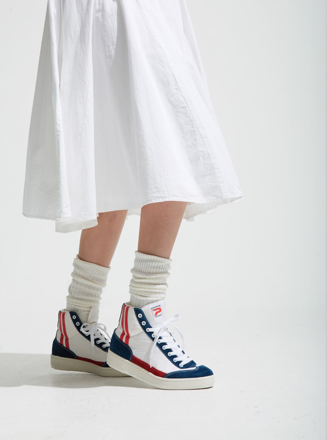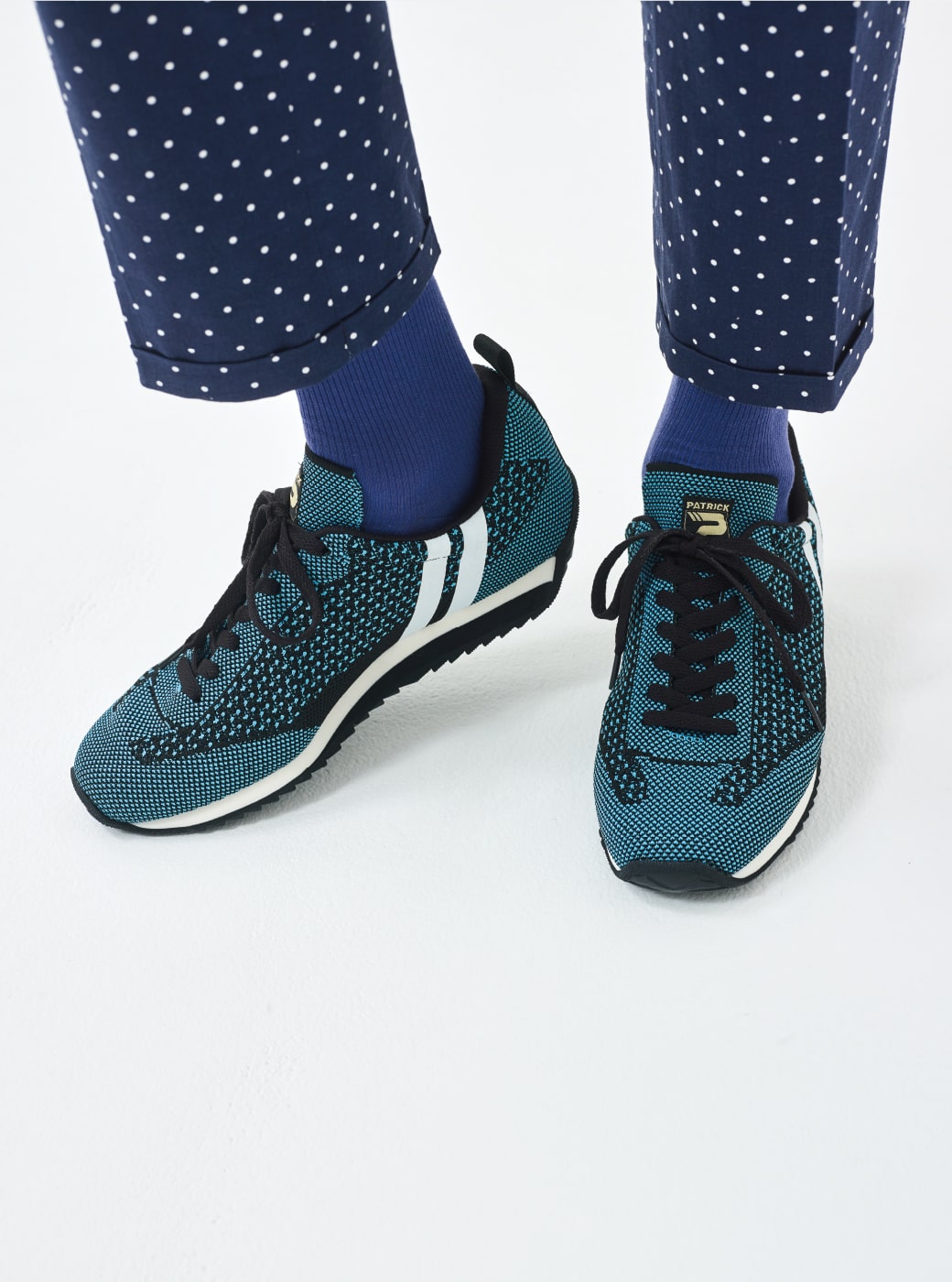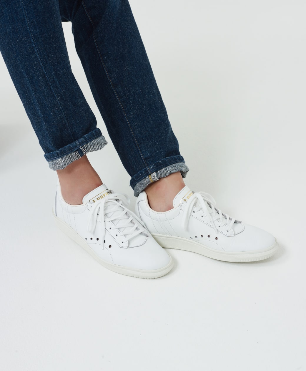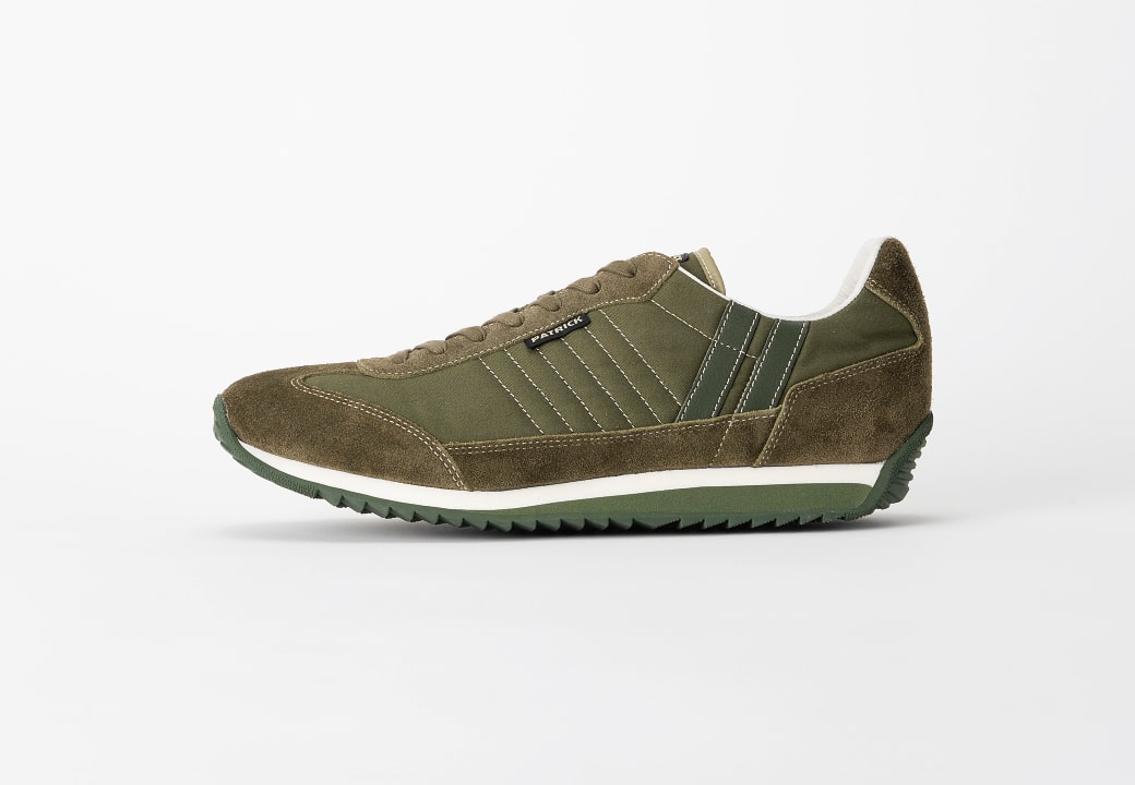 1972年、ブランドのイメージである2本ラインが誕生。フランス屈指のブランドとしてサッカーシューズの開発を始め、オールラウンドスポーツに於いて確固たるポジションを築いていきました。 そして1990年には、日本生産が始まります。細部の仕上げにもこだわりを持つ“日本の技術”が製造に携わったことで、より微細な加工がほどこされたMADE IN JAPANのPATRICKが生まれました。