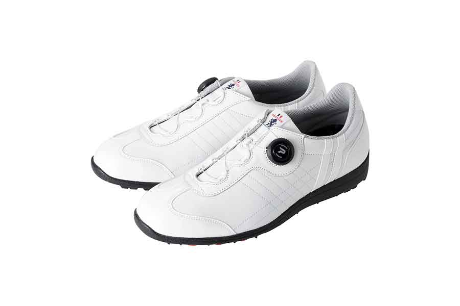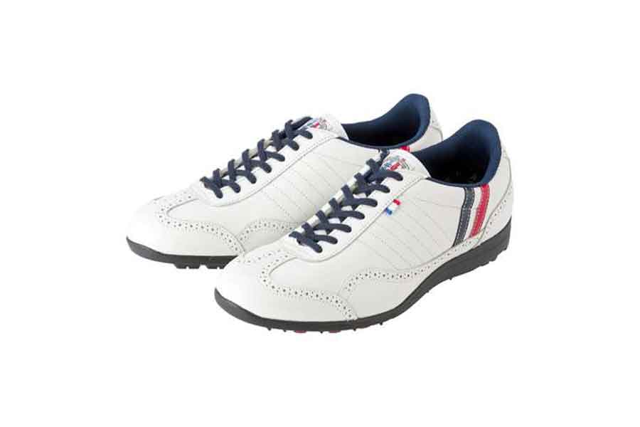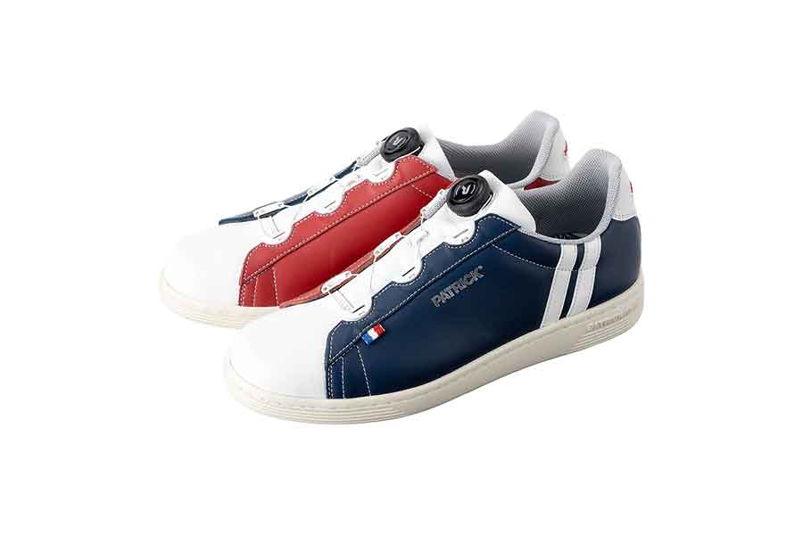 PATRICKの人気モデルPAMIRをゴルフ用にアレンジしています。白・青・赤の清潔感のあるトリコロールカラーが年齢を問わず履いていただけます。先日私もこのシューズでコースへ。ネイビーのブルゾン&スカートにクリーンなホワイトのシューズを合わせ、同伴者にも高評価でした! 気になる方はぜひチェックしてみてください。(スタッフF)