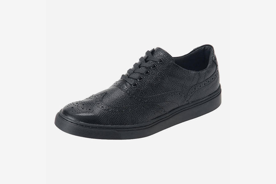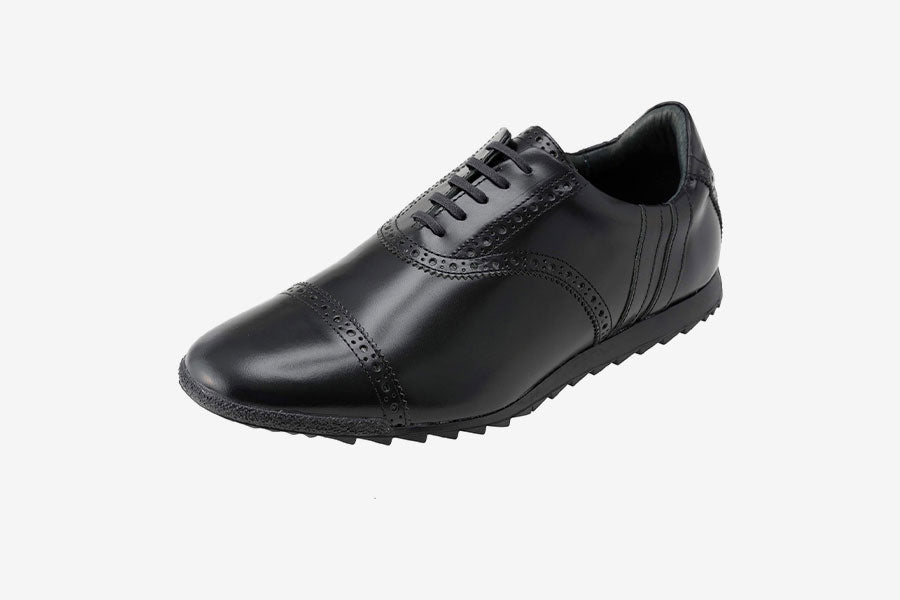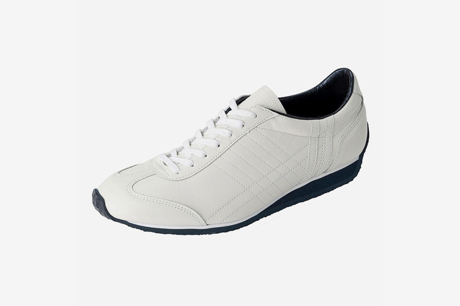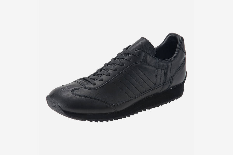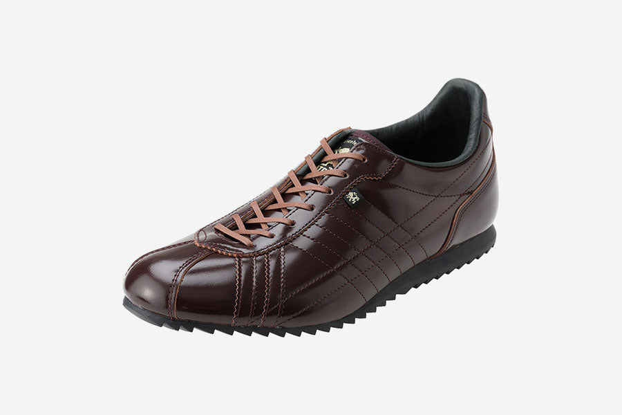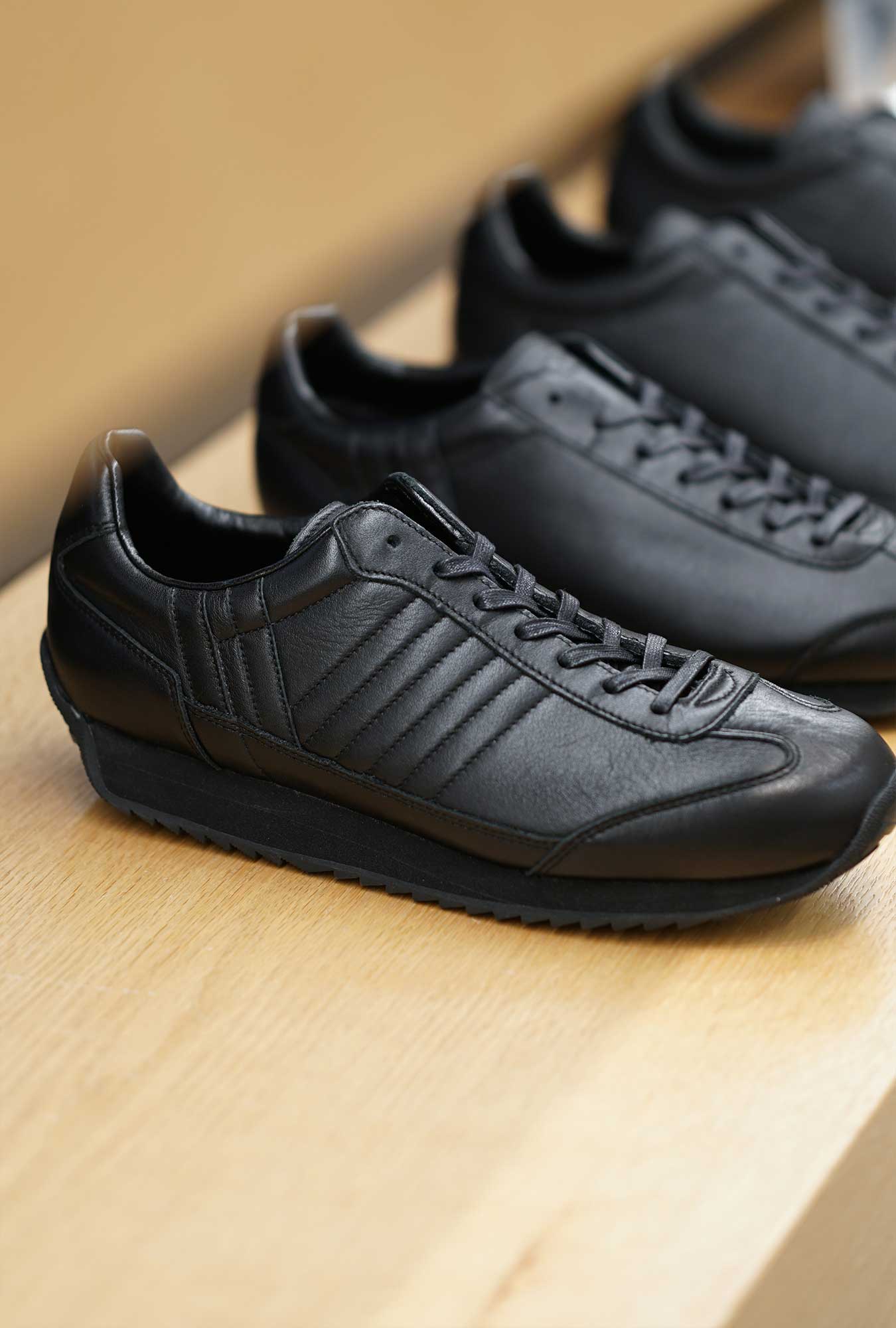 メダリオンが装飾されたアッパーが印象的なスニーカー。ステアレザーに凹凸の型押しを施しました。表面にはウレタン塗料を仕上げることで、漆のような風合いを表現するとともに、普段使いにも適した耐水性を実現。更に、クッション性の高いソールを採用し、ビジネスシーンを足元からオシャレにかつ機能的にサポートします。※こちらは防水モデルではありません