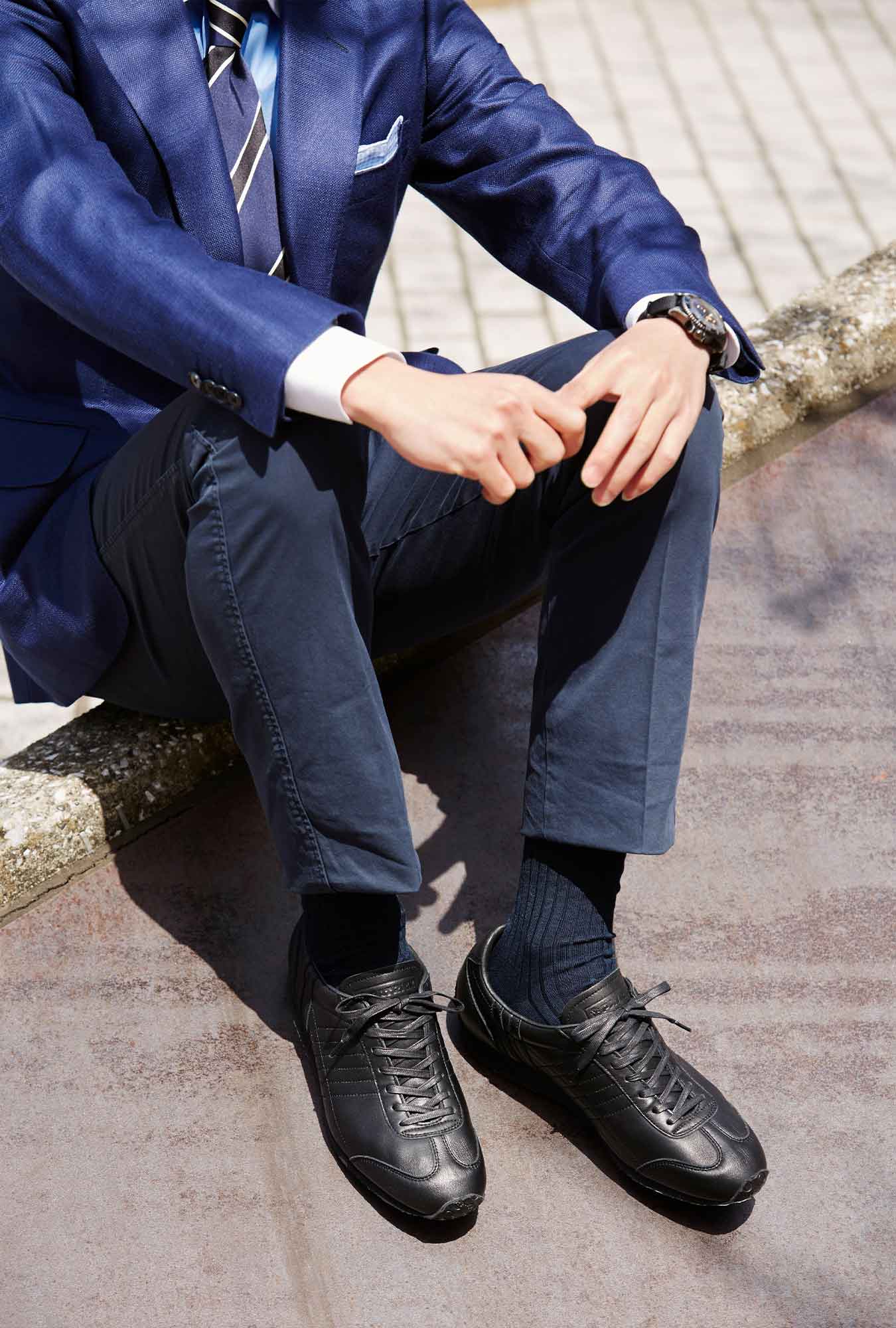 全モデルの中で圧倒的な人気を誇るモデル。ビジネスシーンではやや薄めのソールがフォーマルさを醸し出し、グレー系のセットアップや夏場のクールビズスタイル、行動的に動きたい出張時などの足元に最適。シティバイクやスポーツサイクルなどで通勤するビジネスマンにもお勧めです。※こちらは防水モデルではありません