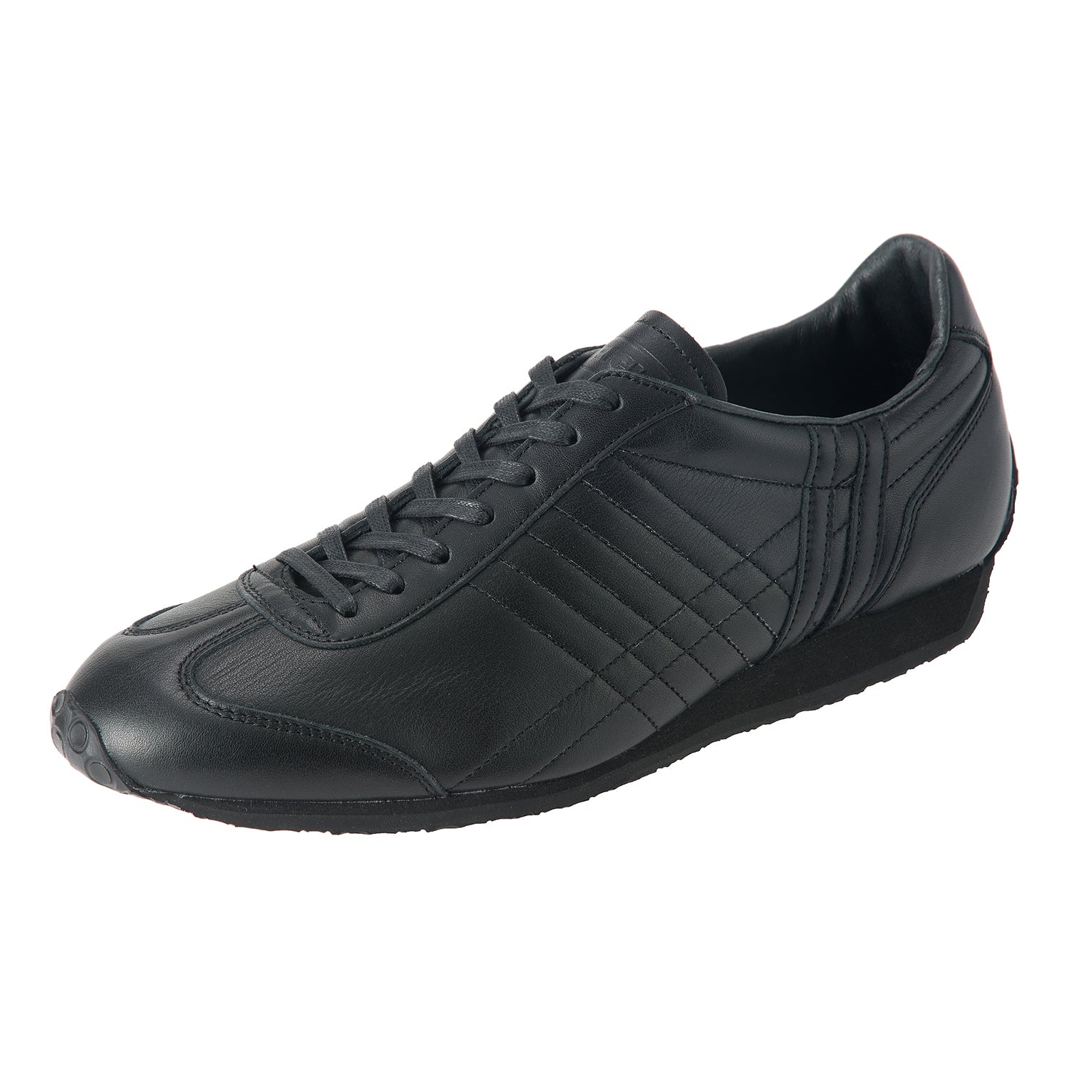 PATRICK定番モデルのオールブラックスタイル。黒一色でシンプルなデザインが更に引き立ち、ビジネスやカジュアルにも使いやすいスリムなシルエット。防水モデルであり、なめし加工の際にアッパーにスコッチガード™(防水液体剤)を混ぜ込み、革自体に防水機能を持たせている。雨の多い季節、突然のゲリラ雷雨など悪天候に見舞われても安心。防水モデルで最も人気のロングセラーモデルです。