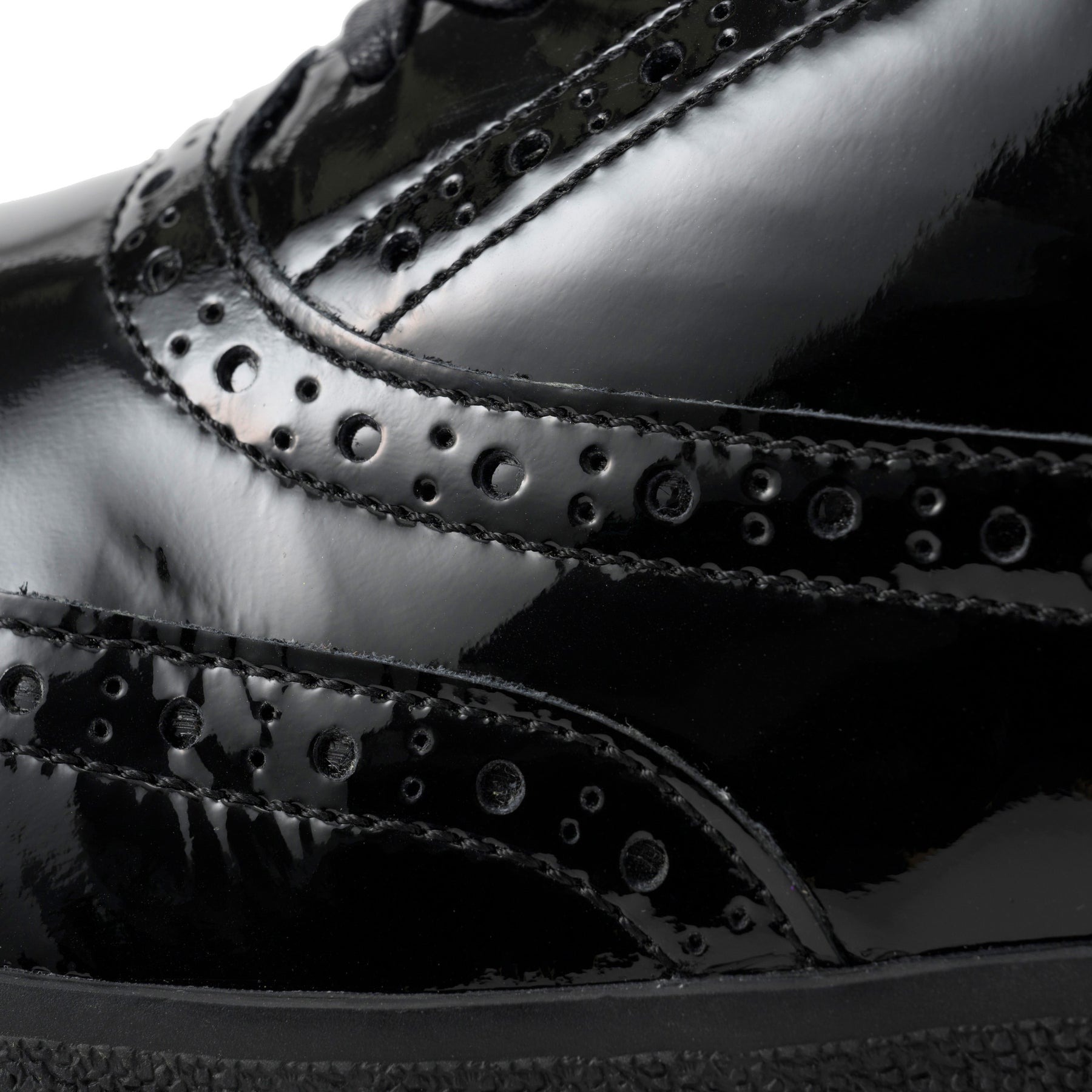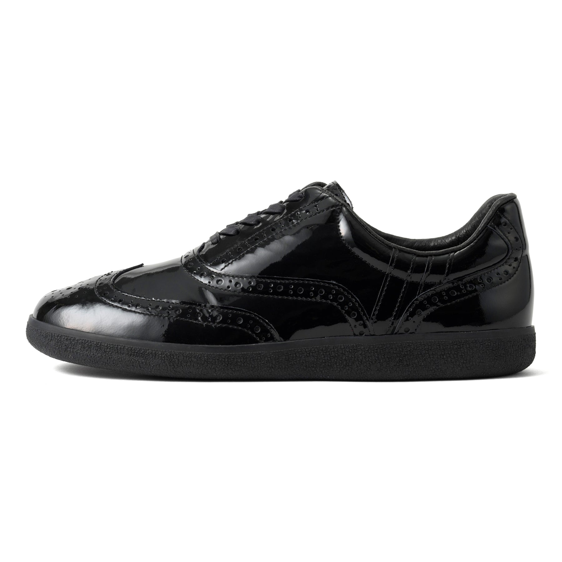 この商品の最も注目すべき点は、伝統的なクラシックシューズのスタイルを保ちながら、現代的な快適性を追求した設計にあります。メダリオンによる装飾的要素は単なる装飾にとどまらず、シューズ全体の品格を向上させる重要な役割を果たしています。エナメルレザーの採用により、従来のレザーシューズでは実現困難だった撥水性と手入れの簡便さを実現し、日常的な使用における実用性を大幅に向上させています。カップソールの構造は、歩行時の衝撃吸収性を高めるだけでなく、足の形状に自然にフィットする柔軟性も提供します。