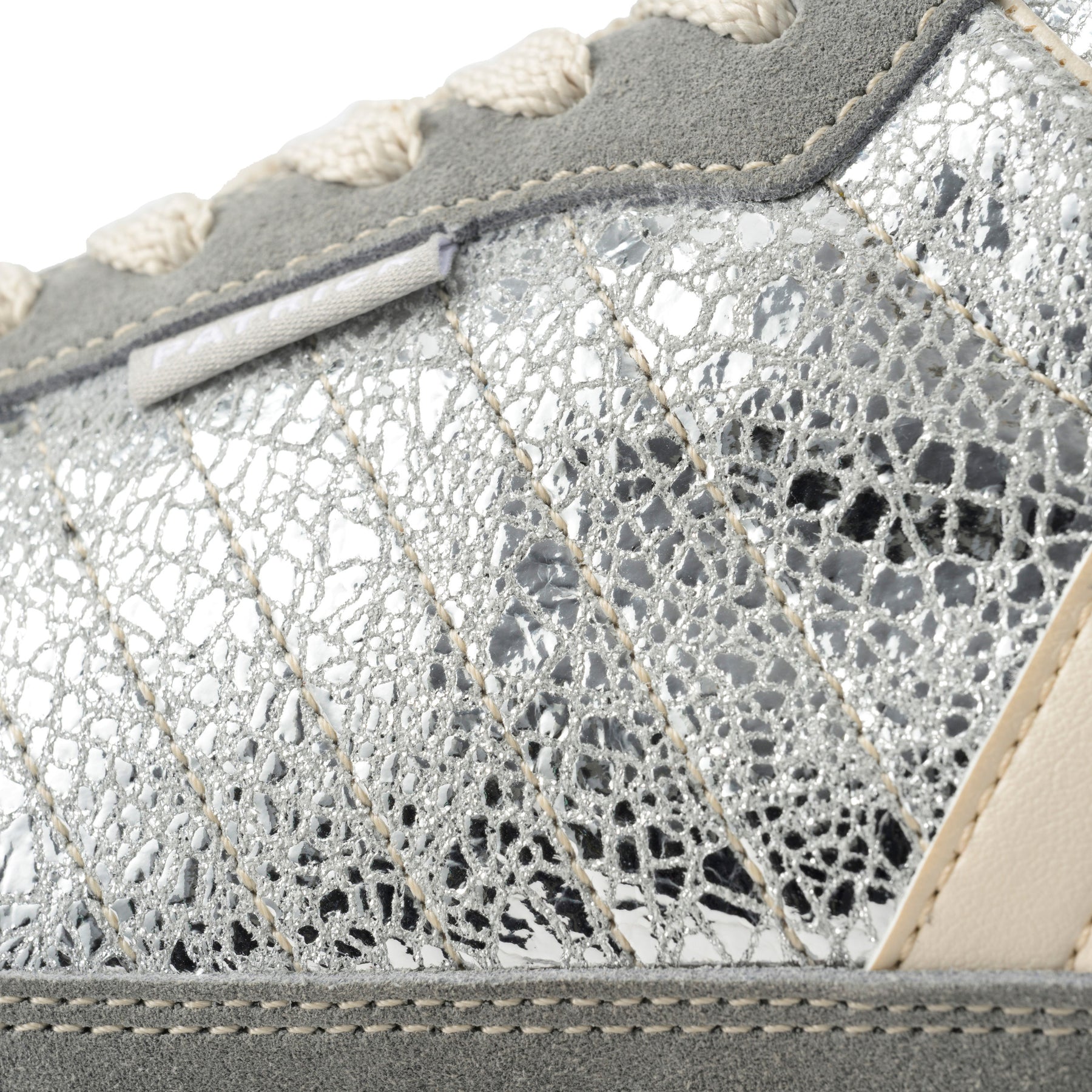 MARACK-LEは、単なるスニーカーではありません。そのデザインは、熟練した職人のこだわりが詰まった芸術作品と言えるでしょう。クラッキング加工による独特のひび割れは、一足一足異なる表情を生み出し、使い込むほどに風合いが増すため、自分だけの特別なアイテムに育っていきます。さらに、絶妙なカラーリングがビンテージ感を演出し、コーディネートのアクセントとして存在感を放ちます。メタリックな輝きは、派手すぎず、どんなスタイルにも自然に溶け込み、さりげなく個性を主張します。