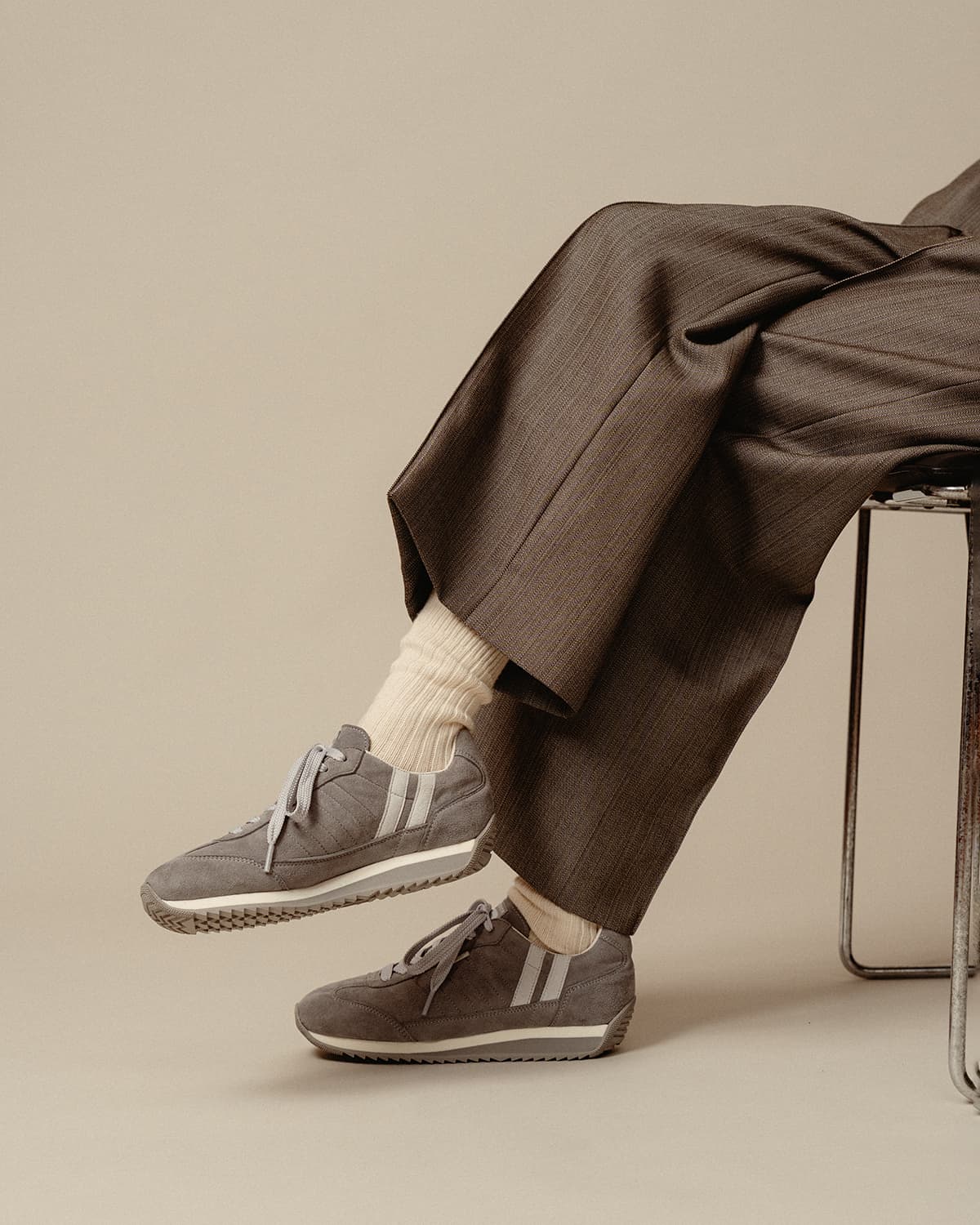 人気の「MARATHON」に、上品な表情を添えるゴートスエードをまとわせた限定仕様。落ち着いた3色展開ながら発色はクリア。きれいめにも寄せられる大人の“テクスチャー系スニーカー”として、足元に程よい深みを与えます。