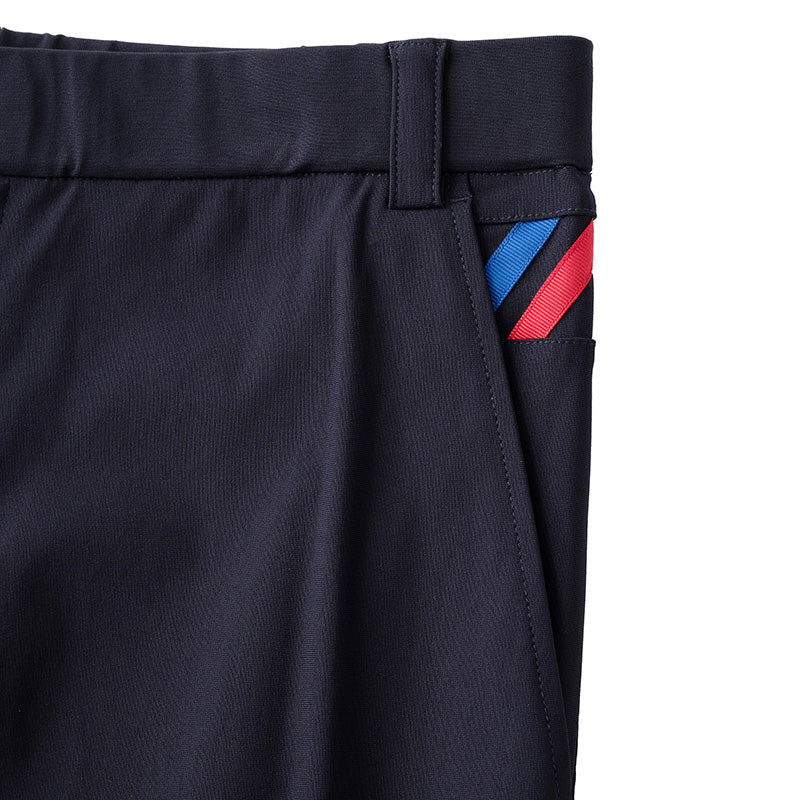 左腰ポケットにはブランドアイコンがテープでアクセントされ、トップスとの上下セットアップで着用することで、スタイリッシュなゴルフスタイルが完成します。季節を問わず快適な着心地を実現し、肌触りの良い滑らかで柔らかな素材が特徴です。
