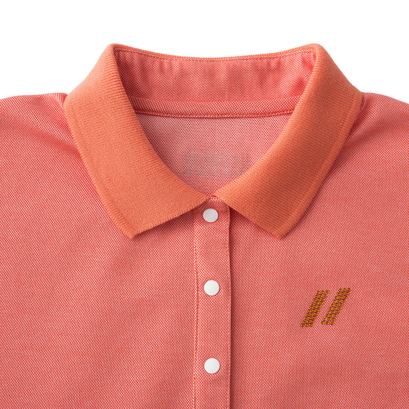 さらに、このポロシャツは薄くて軽量な素材を使用しており、太陽光反射性と紫外線遮断率が非常に高いため、高温環境でも清涼感を保ちながら快適な着用が可能です。素材の組織には凹凸があり、肌触りも良好です。