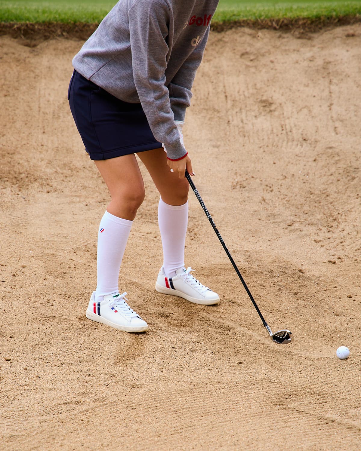 機能性とデザインを兼ね備えたこの一足は、ゴルフウェアとの相性も抜群。鮮やかなラインがアクセントとなり、シンプルなモノトーンコーデから大胆なカラーコーデまで幅広く対応。ラウンドでの足元をより洗練された印象に仕上げます。