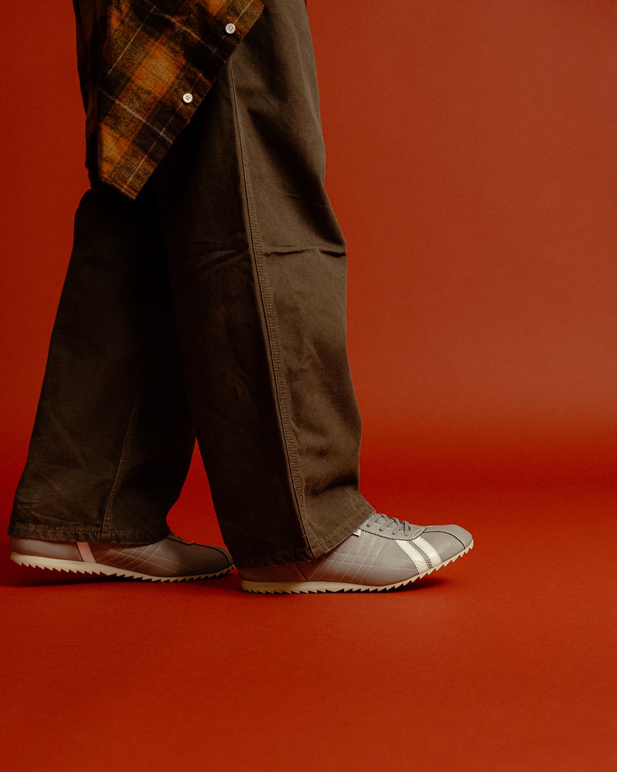 PATRICKの中でもかなり足幅が細いため通常よりも1サイズアップの43を着用します。