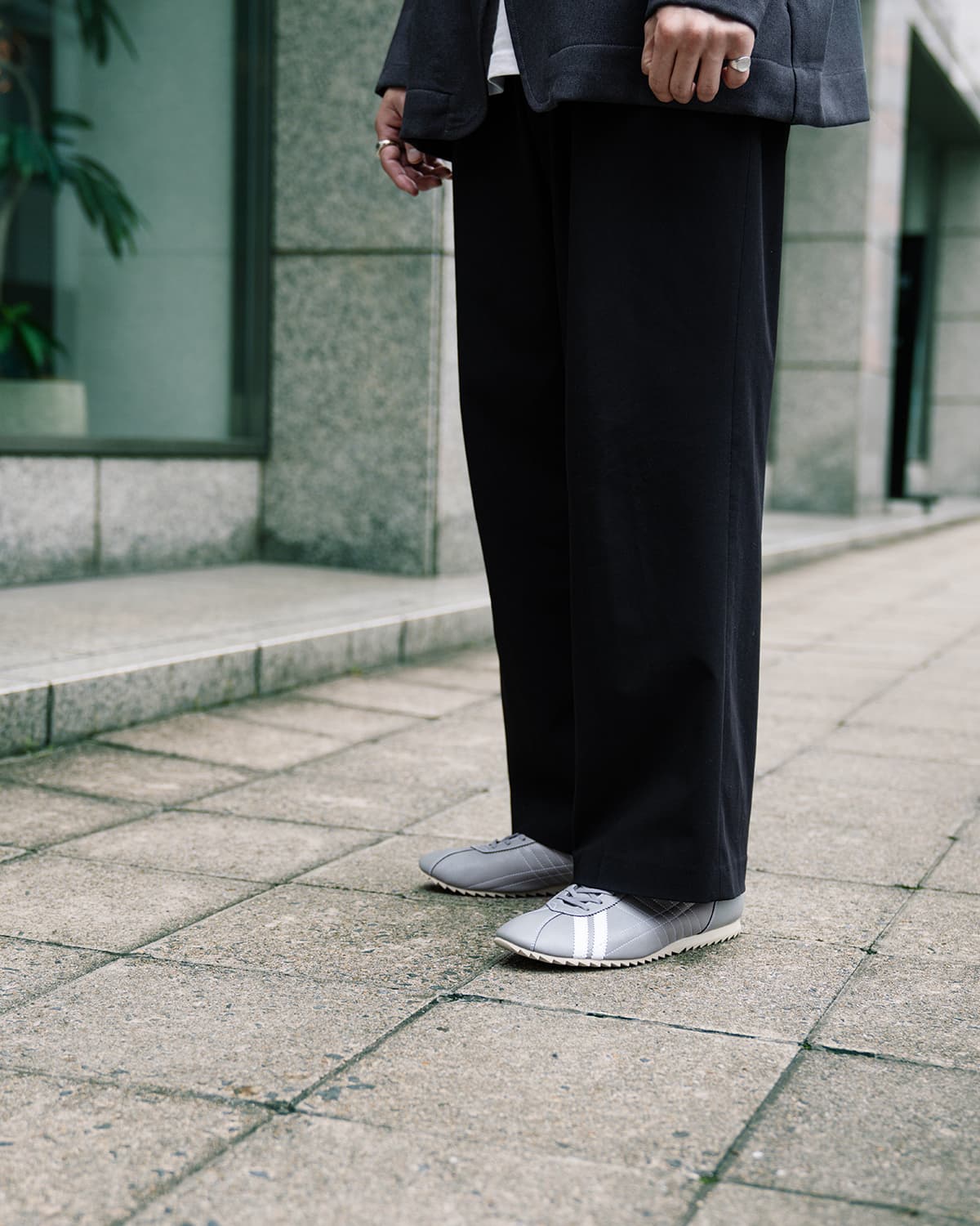 唯一無二の“つま先2本ライン”が、パンツでもスカートでもスッと伸びてシャープなフォルムを強調。ムラ感のある上品なグレーが、主張しすぎずに個性を添えます。数量限定だからこそ味わえる、静かな存在感。