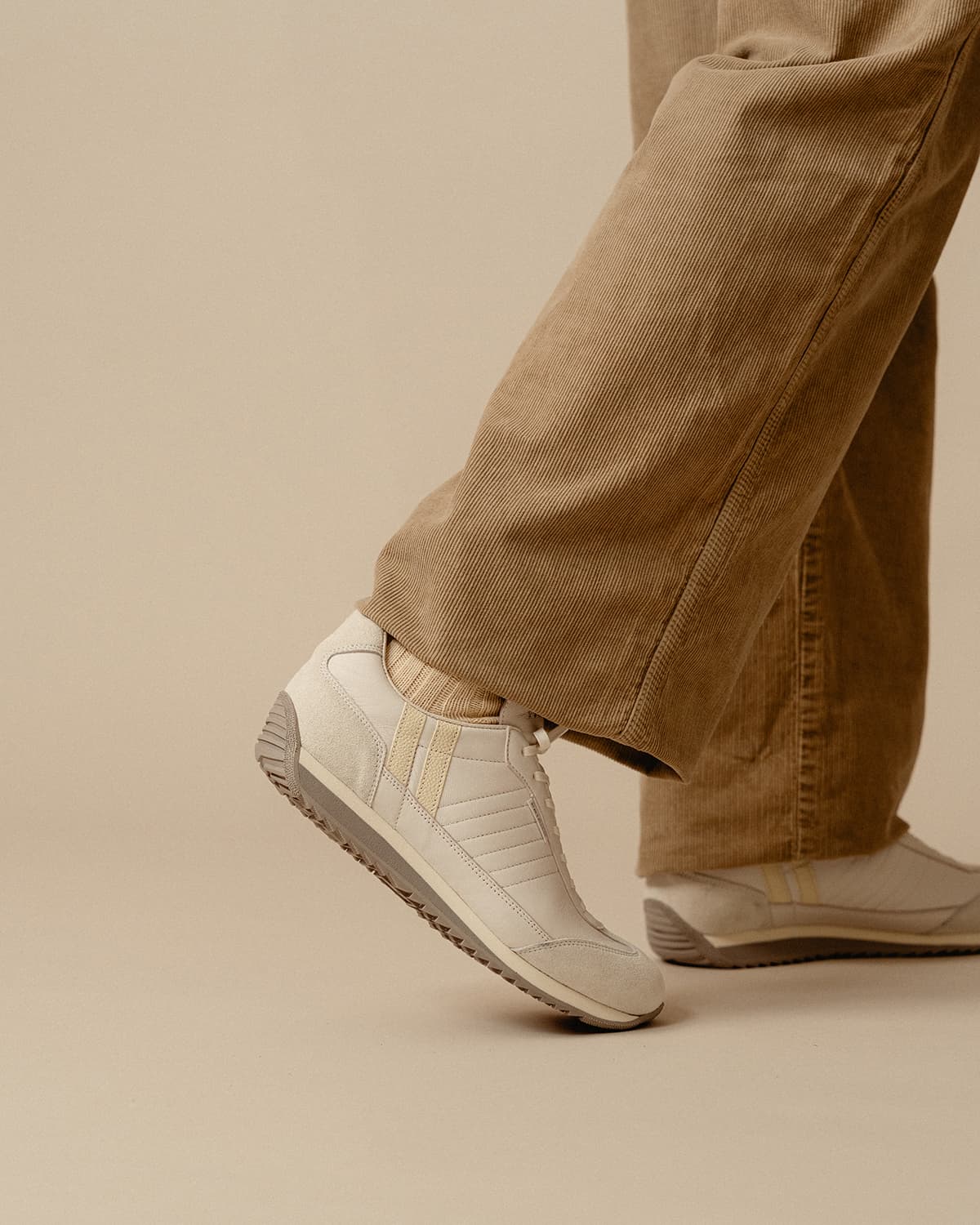 ベースは名作マラソン。アッパーにシープレザー、トゥ周りにステアベロアを配し、素材のコントラストで上品さをプラスしました。スポーティなシルエットに、少し大人の余裕を加えた数量限定モデルです。
