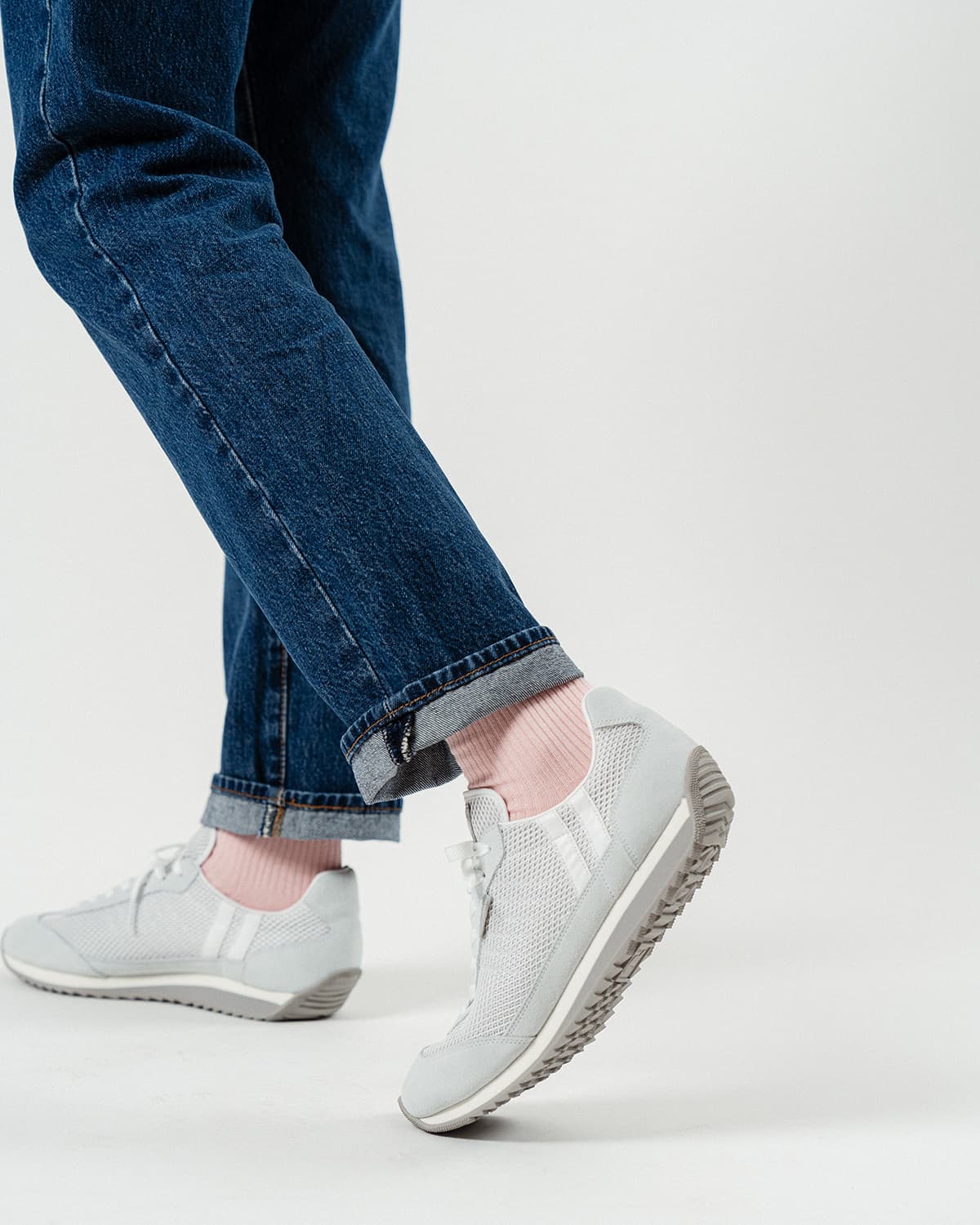 アッパーには立体構造の2層メッシュを採用。通気性と軽量性を両立し、足入れは柔らかくドライな履き心地をキープ。透け感のある素材が見た目にも涼しく、春夏の足元にちょうどいい軽快さをもたらします。