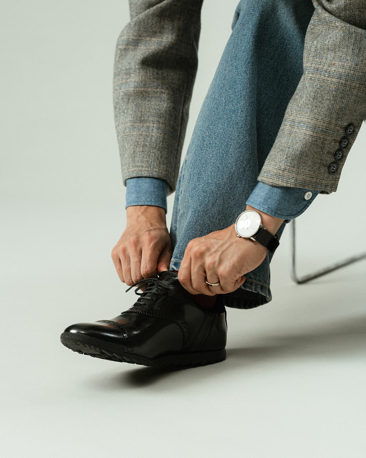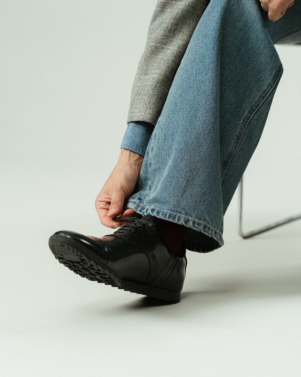 ストレートチップ型のサドルシューズからインスパイア