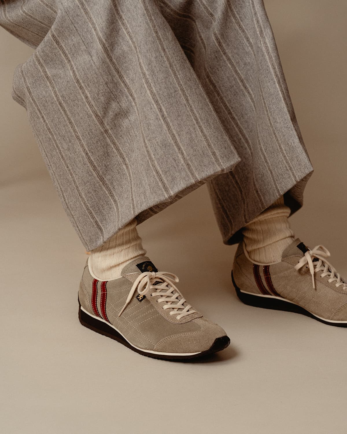 アッパーには、秋冬シーズンに人気のステアベロア素材を使用し、柔らかく高級感のある質感を提供します。この素材は、見るだけで季節感を感じさせ、コーディネートのアクセントとして最適です。落ち着いた風合いが、秋冬ファッションにしっくり馴染みます。