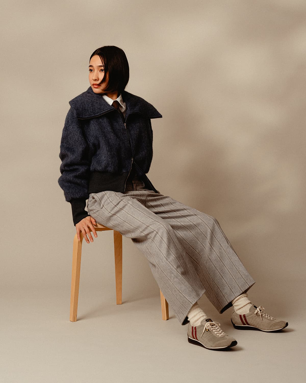 秋冬の季節感を演出する「アイリス・ベロア」は、シンプルなパンツやデニムに合わせるだけで秋冬のスタイルを楽しめます。また、ジャケットやコートとの相性も抜群で、足元から秋冬のファッションにアクセントを加える一足として活躍します。