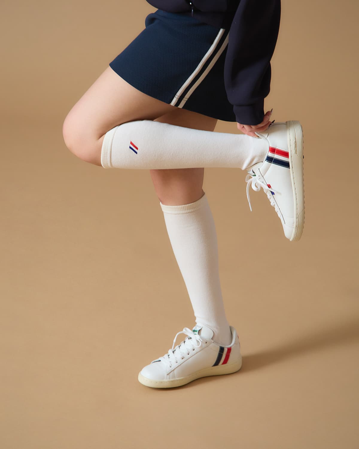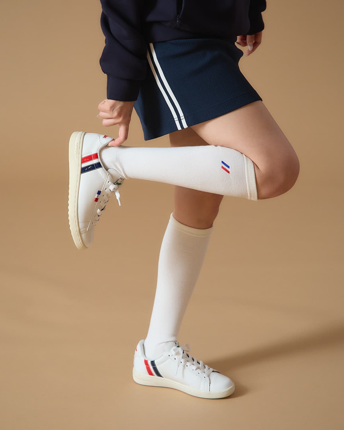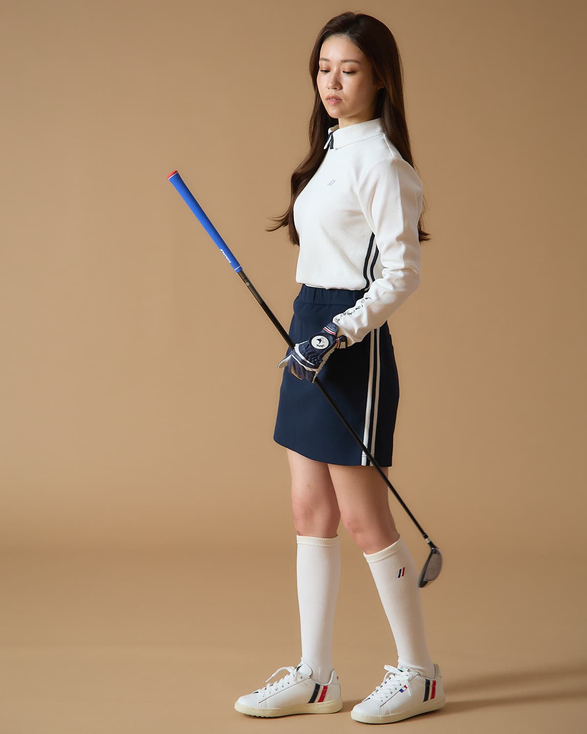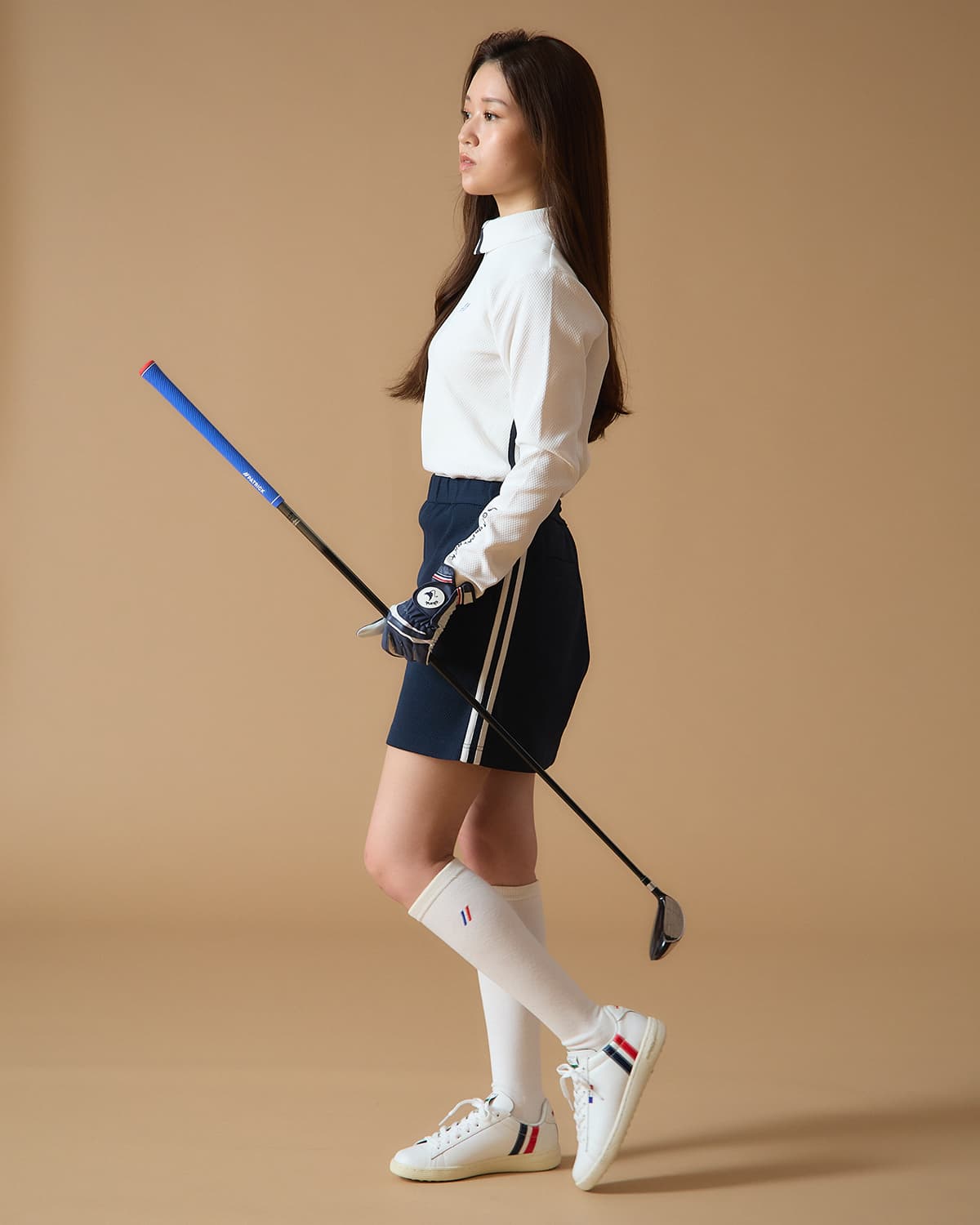 トレンドのコート系スタイルに、踵部分の鮮やかなエナメル2本ラインがアクセント。トリコロールのピスネーム付きハトメや、GOLF専用の新しいPOPな織ネームが高級感と遊び心を演出します。