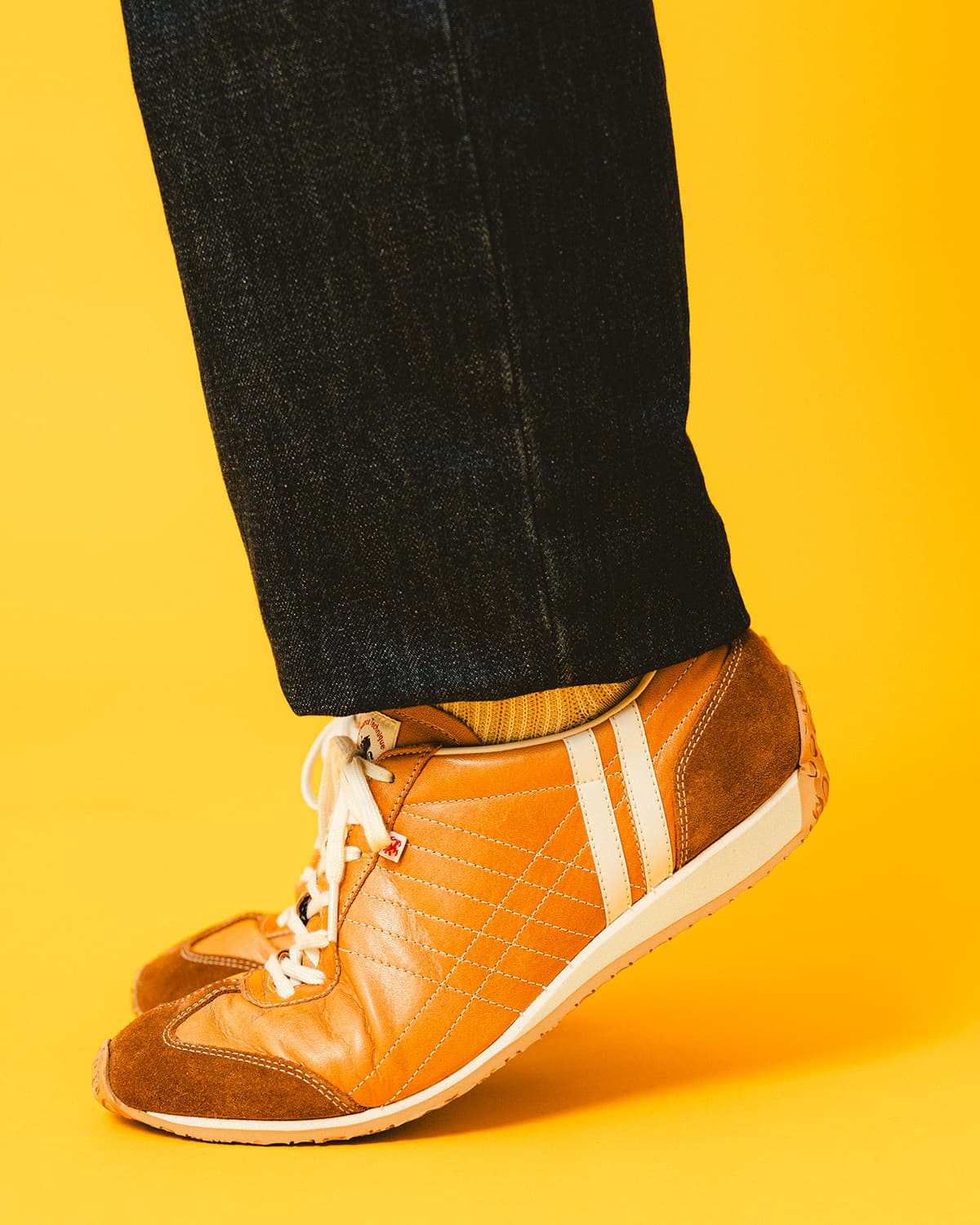 数量限定カラー〈ホース・キャメル〉は、革の持つ温かみと深みのある発色が印象的。落ち着いたトーンながら、さりげなく足元を主役にしてくれる大人の一足です。