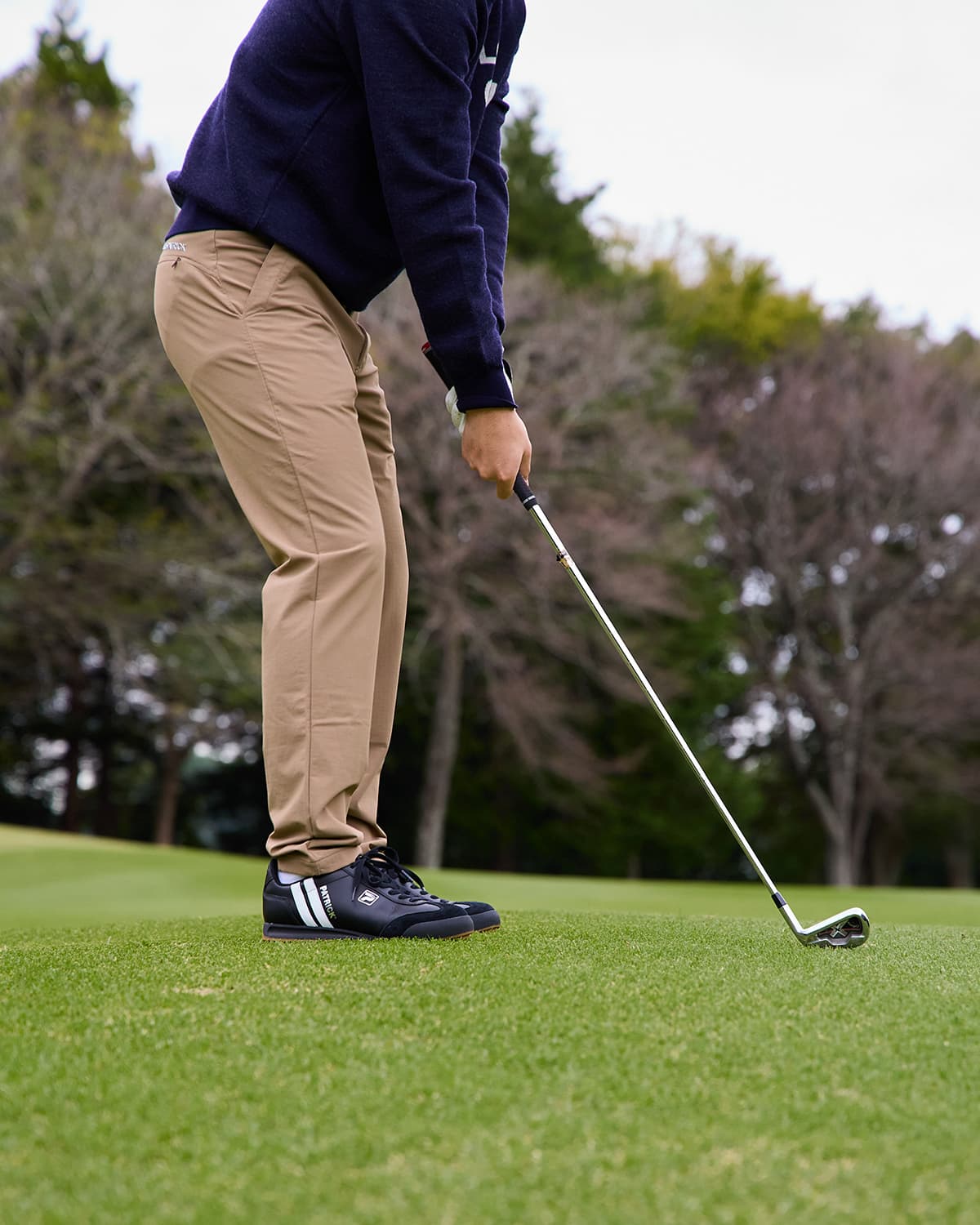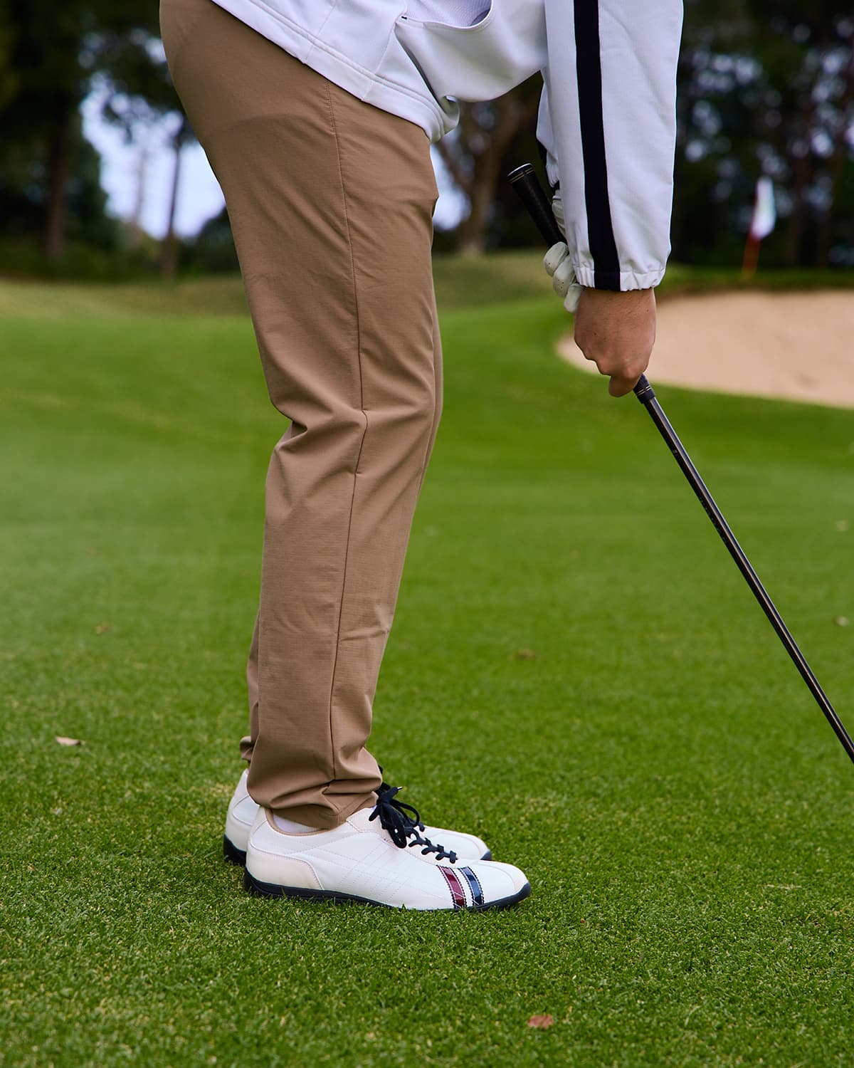 無駄のないシルエットが特徴のロングパンツ。落ち着いたデザインはゴルフシーン以外でも街中に自然と溶け込みます。