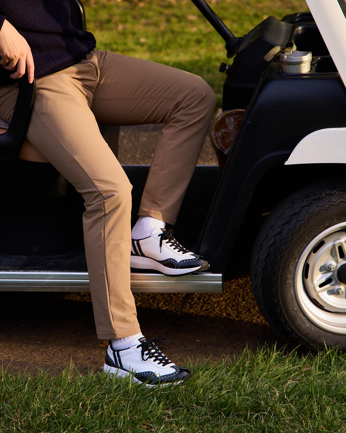 ゴルフシーンではニットやジャケット、プルオーバーと合わせて上品に、普段使いではカジュアルな組み合わせても可能。全天候型の性能でプレー中も安心です。