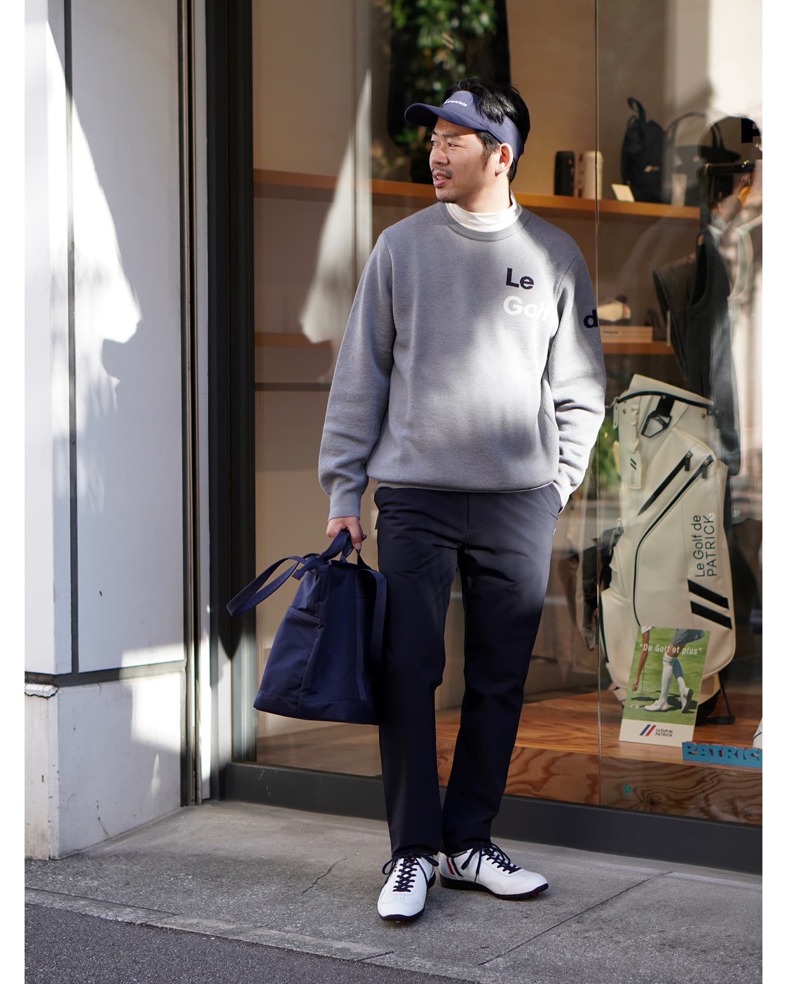 ゴルフラインの「Le Golf de PATRICK」からリリースされた「メンズ クルーネックニット」は、左胸から背中にかけてジャカード編みで表現されたブランドロゴが特徴的なアイテムです。