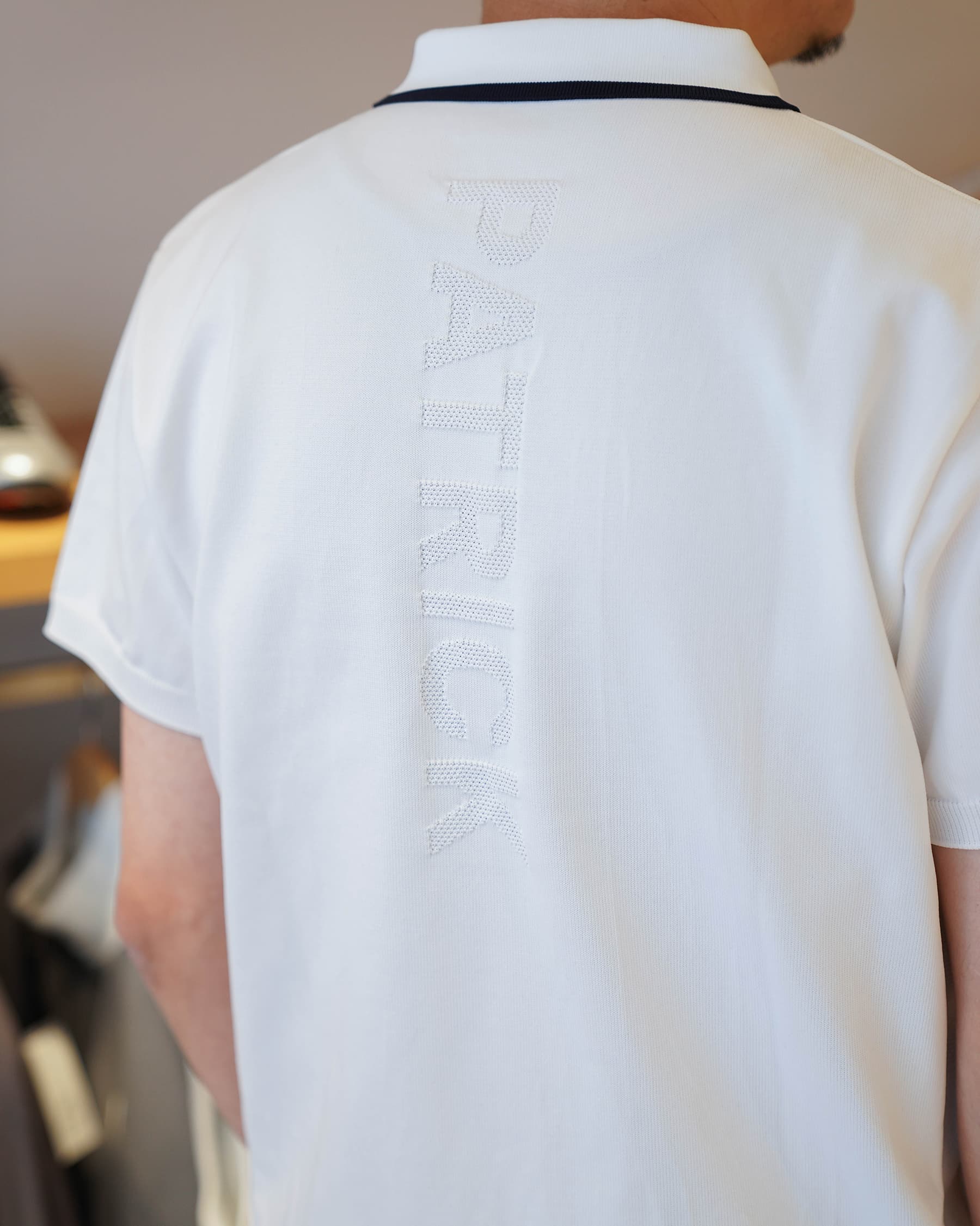 アイテムの背面にはニットならではの背面ロゴが施されています。また、脇にはカノコ編み地柄が配されており、デザインのポイントとなっています。これらのディテールがアイテムの個性を引き立てます。