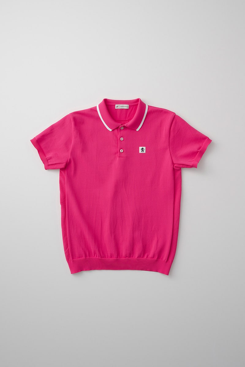 アイテムの背面にはニットならではの背面ロゴが施されています。また、脇にはカノコ編み地柄が配されており、デザインのポイントとなっています。これらのディテールがアイテムの個性を引き立てます。
