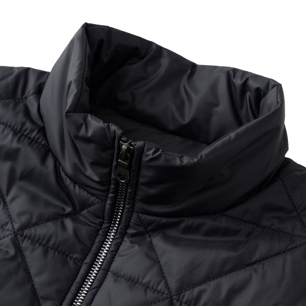 軽量で撥水性のあるソフトタフタ素材を使用した中綿ベストは、シンプルながらも洗練されたデザインが特徴です。ゴルフコースでの動きやすさを考慮し、シルエットも美しく仕上げています。両脇に施されたコーデュラのディテールが、ベスト全体にアクセントを加え、見た目にもスポーティでありながらエレガントな印象を与えます。