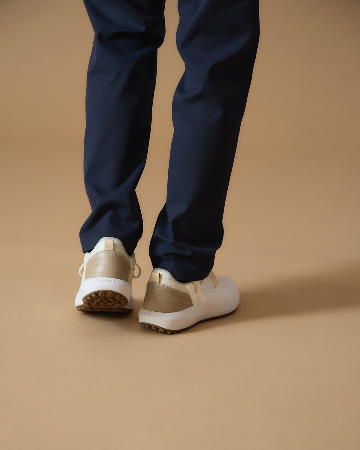 ゴルフシューズとして新たに開発したソールとデザインにより、全体に程よいボリューム感を持たせつつ、土踏まず周りと踵のホールド感も兼ね備えた構造となっています。 加えてクッション性とグリップ力も向上しており、疲れを軽減し快適なプレーをサポートしてくれます。革の表面をウレタンコーティングしており、従来の革にくらべて、強度を高める仕上げのためキズがつきにくい仕様になっています。