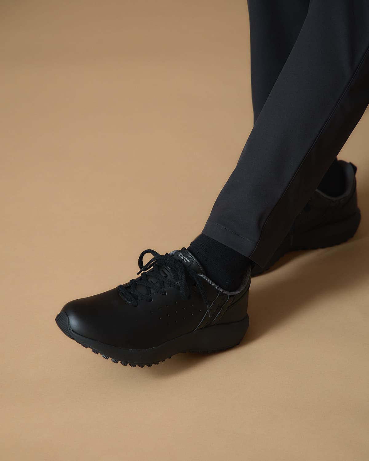 アッパーの革はウレタンコーティングを施しており、従来のレザーに比べて強度が高く、傷がつきにくいタフな仕上がりも魅力。 デザイン性と機能性を兼ね備えた、コースにも街にも映える一足です。