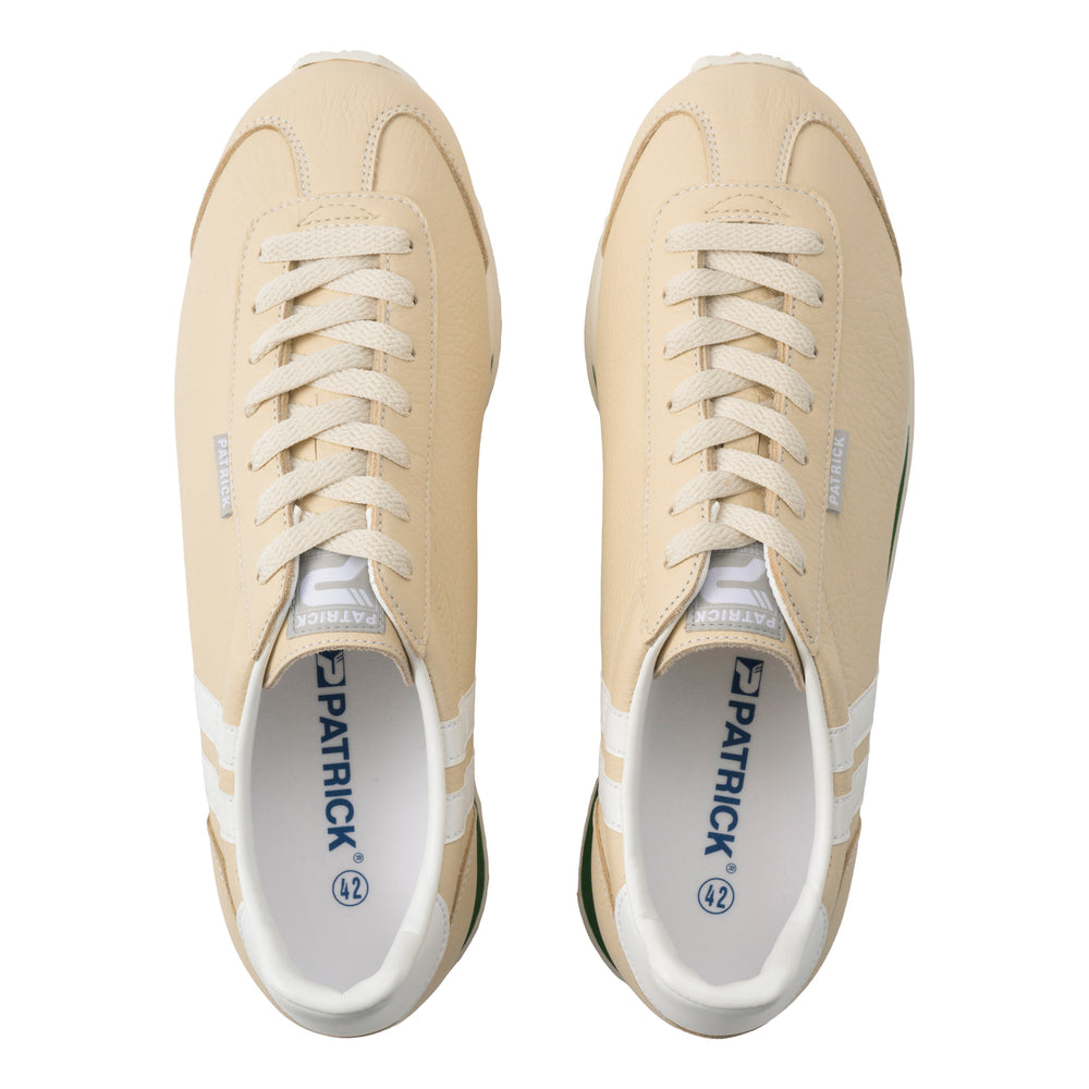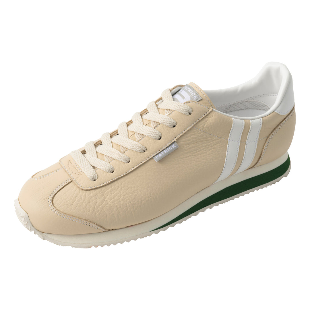 スニーカーなのに、どこかレザーシューズのような品格あり。NEVADAは、上質なステアレザーをシュリンク加工でさらに柔らかく仕上げた、足なじみ抜群のモデルです。縫い目を最小限に抑えたミニマルなデザインながら、スニーカーらしいカジュアルさも絶妙に残しており、キレイめコーデからデニムまで幅広く対応。アメ色ソールのレトロな雰囲気がさりげないアクセントになっており、見た目以上に着回し力も高め。暑さ寒さに左右されない素材感で、通年で“今日もこれにしよう”と思わせる一足。