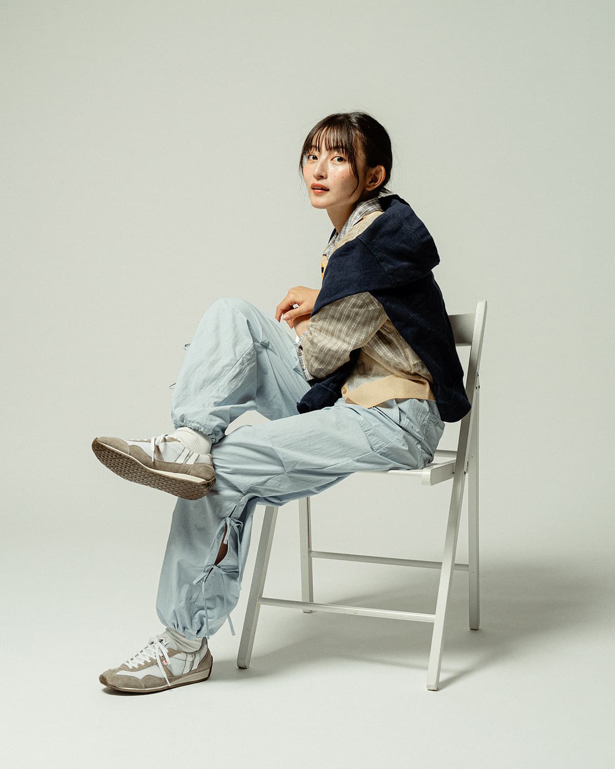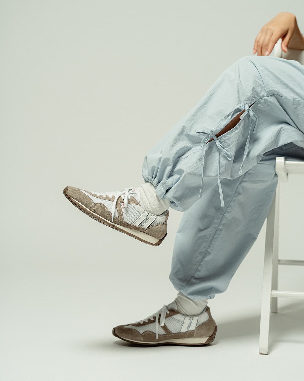 新色ホワイト/モカは、クリーンな印象にほんのり落ち着きを添えた配色。軽やかなデザインながら、どこか品のある佇まいで、カジュアルからきれいめまで自然にフィット。気負わず履けて、しっかり洒落る一足です。