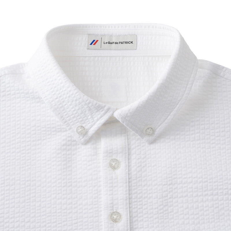 ゴルフラインの「Le Golf de PATRICK」からリリースされた「M シアサッカーポロシャツ」は、吸水速乾性に優れた凹凸のある肌触りの良いシアサッカー素材を使用したBDポロシャツです。カジュアルでありながらもエレガントなムードが漂い、着用シーンの幅を広げます。1枚での着用はもちろん、ミドルレイヤーとしても活躍する汎用性の高いアイテムです。