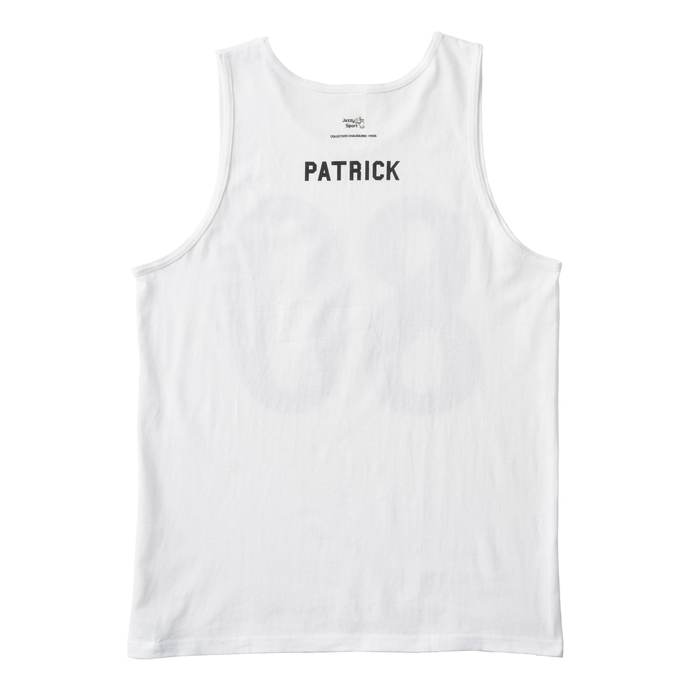 バックには、シンプルながらも中央に存在感のあるJazzy SportのワンポイントロゴとPATRICKのロゴがあしらわれています。