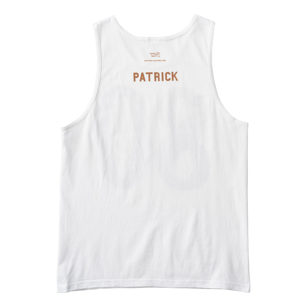 バックには、シンプルながらも中央に存在感のあるJazzy SportのワンポイントロゴとPATRICKのロゴがあしらわれています。