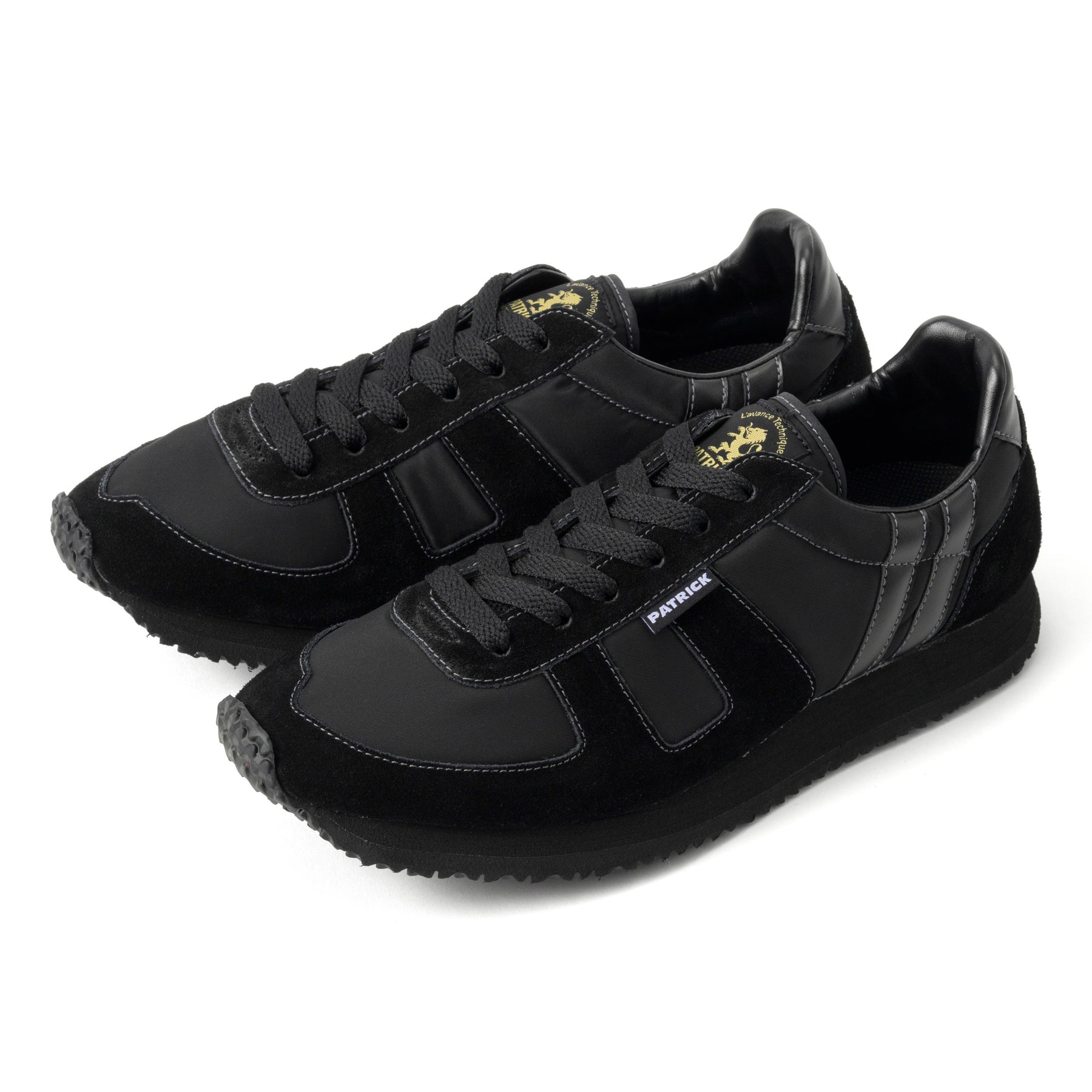 PATRICKのレトロランニングシューズ「カリフォルニー」は、1980年代のランニングシューズをモチーフにリモデルされた、どこか懐かしい雰囲気が魅力の定番モデルです。そのクラシックなデザインに、新色の「BB」(ブラック/ブラック)が加わりました。