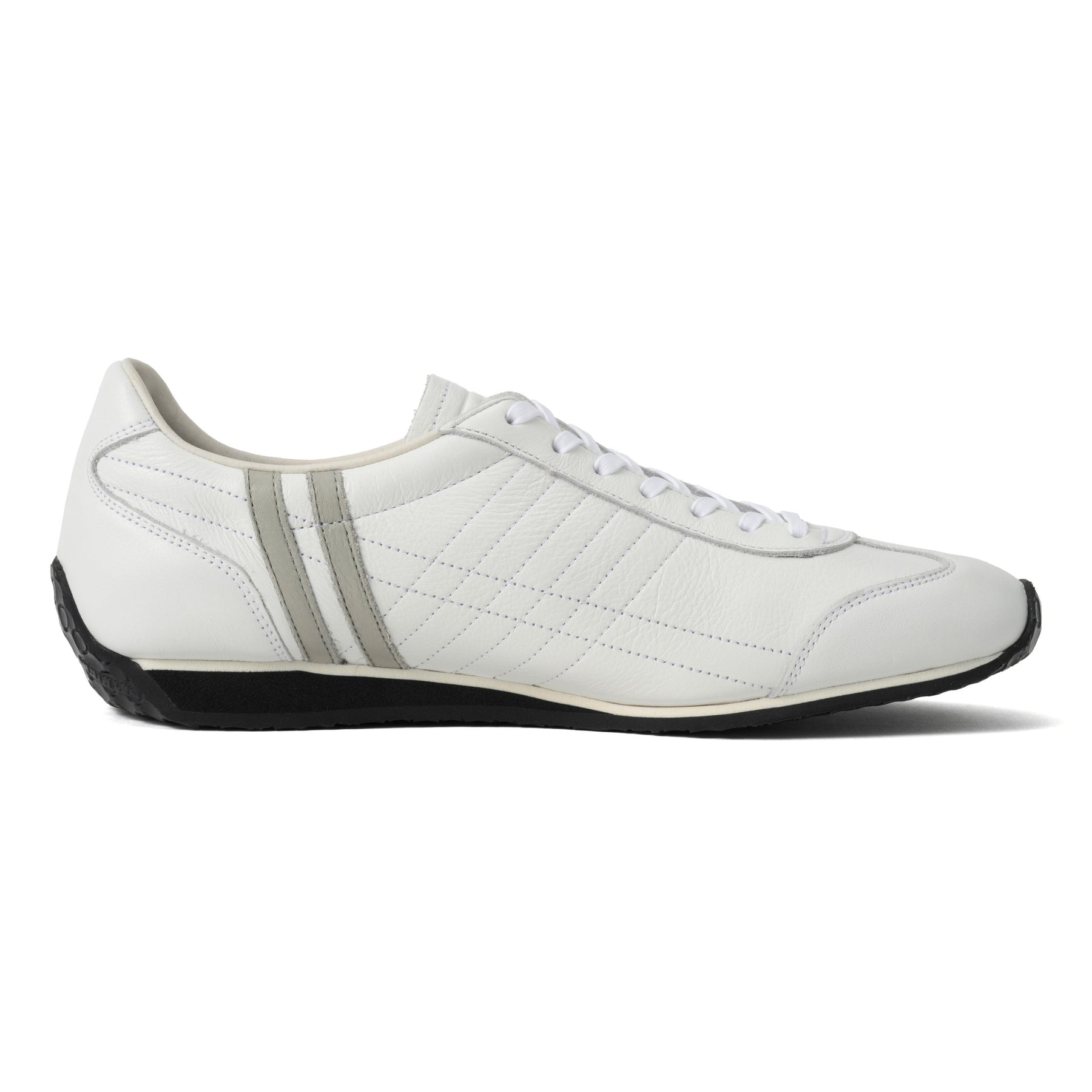 このモデルの最大の特長は、アッパーに撥水機能を備えた柔らかいステアレザーを採用している点です。これにより、突然の雨でも水を弾き、汚れがつきにくいという実用性を備えつつ、高級感のあるルックスを保ちます。単なるファッションアイテムではなく、日々の生活に寄り添う機能性をプラスすることで、「大人のスニーカー」として、ワンランク上の素材感を提案しています。
