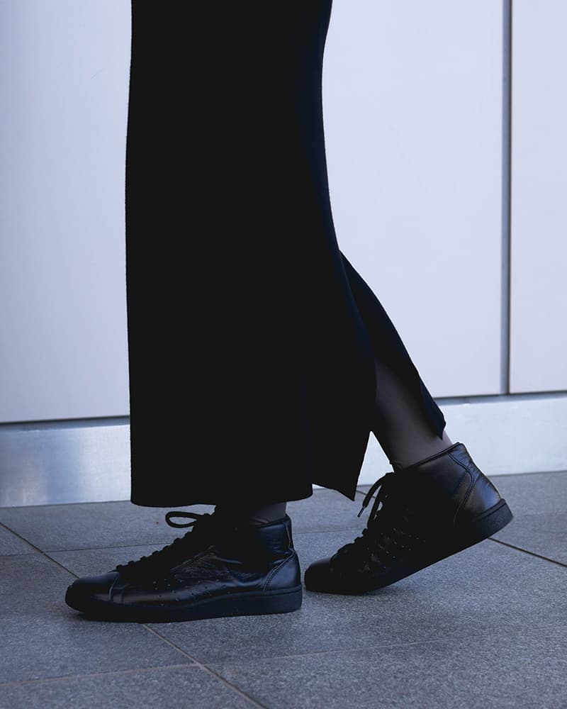 シュータンの違和感ゼロ。足周りのストレスを排除し、長時間の着用でも快適さをキープ。ハイカットの概念を刷新する仕上がりです。