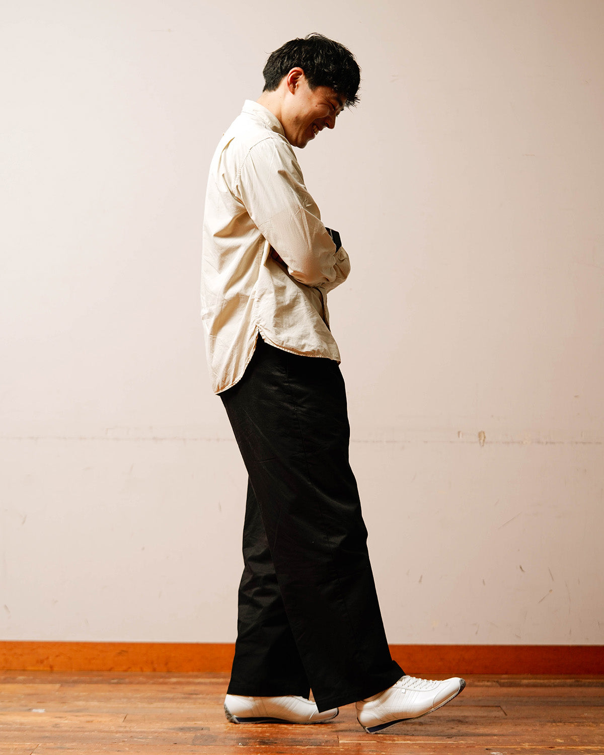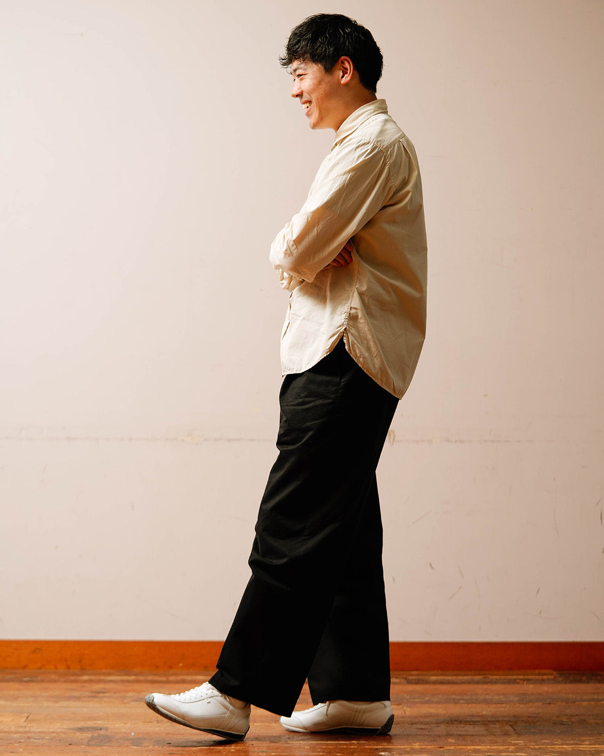 細身の作りのためジャストサイズで着用ができます。