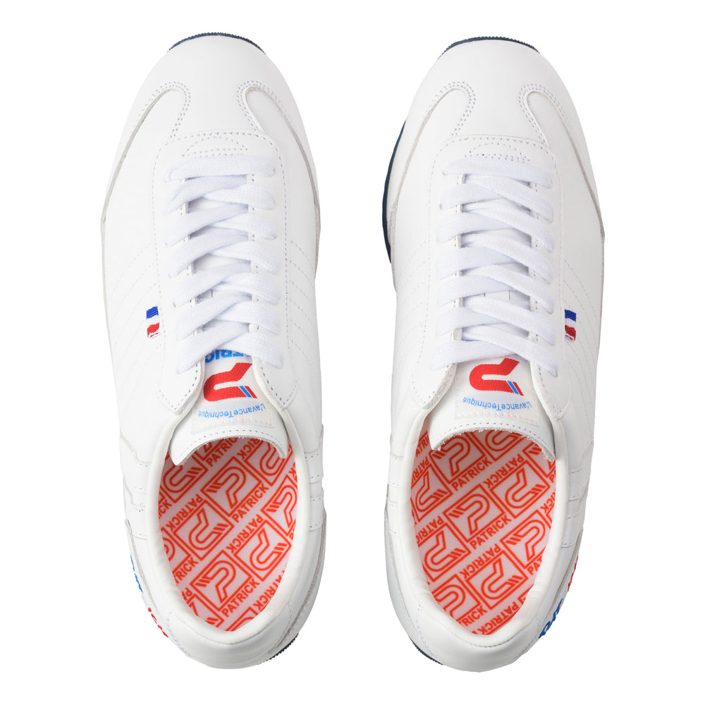 ホワイトを基調に、トリコロールカラーのアクセントが映える爽やかな一足。踵の横に施されたトリコロールのロゴ刺繍が、シンプルなデザインの中に遊び心を添えています。ポップな印象の「マラソン」モデルとは一線を画す、落ち着いたベーシックなデザインながらも、トリコのワンポイントが可愛らしく、どんなコーディネートにも馴染みやすい仕上がりです。