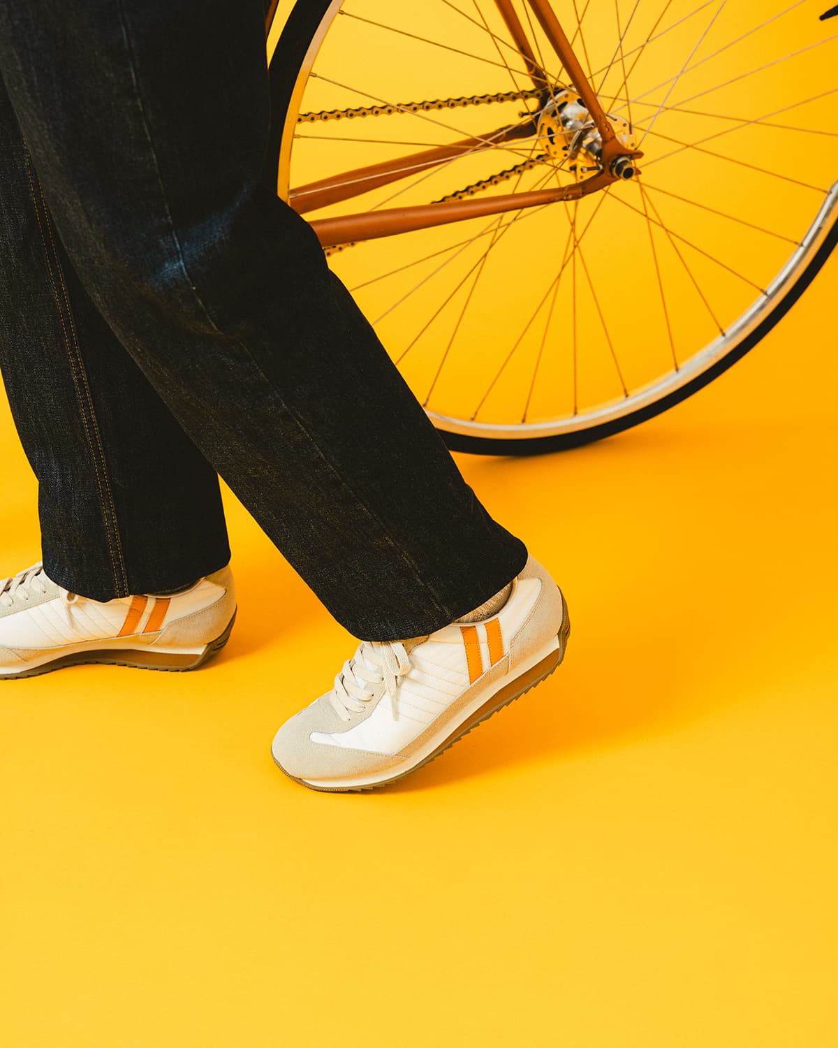 ブランドを代表する〈MARATHON〉は、ポップな配色と洗練されたシルエットが魅力のロングセラーモデル。今季は“モーニング”をテーマに、朝の空気を感じる6カラーが登場。中でも〈EGG〉は、ホワイト×イエローの軽やかな組み合わせが足元に清潔感と遊び心を添えます。