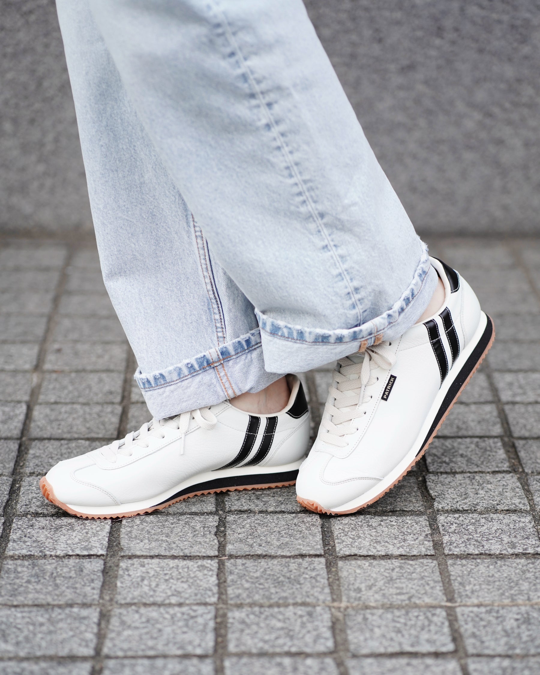 長年愛され続けるPATRICKの人気定番モデル「ネバダ 2」は、洗練されたシンプルなデザインが魅力です。どんなスタイルにも自然になじむそのフォルムは、老若男女問わず支持を集め、リピーターも多数。クラシックな雰囲気を醸し出すアメ色のアウトソールや、やわらかなホワイトクリームに近いカラーリングが、足元にさりげない品格を添えてくれます。