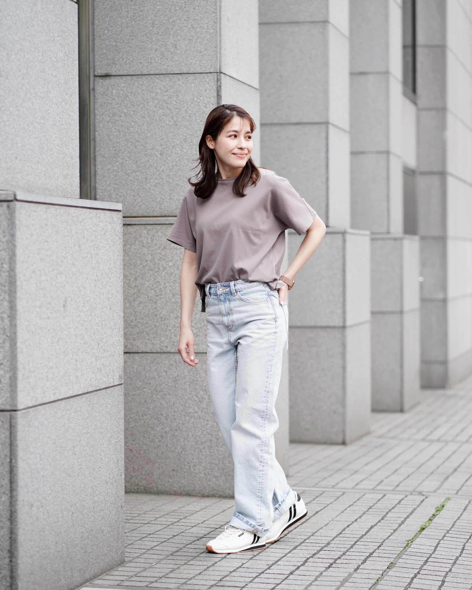素材が柔らかく、スッと履きやすいためいつものサイズ感で。甲高でも窮屈感なく着用できます。